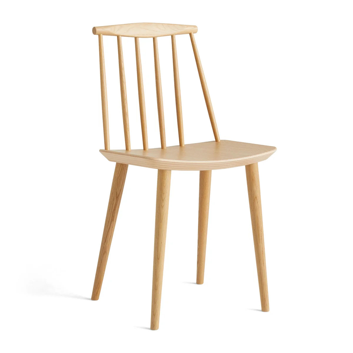 The production of beech wood and the slender shape of the bars on the backrest give the J77 Chair by HAY a look that is at once light and yet solid. The wide seat makes the J77 comfortable, while its classic minimalist design allows it to fit into a wide variety of environments.