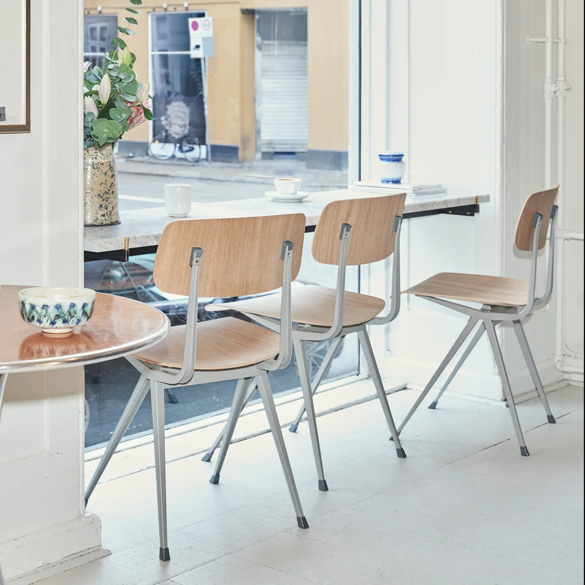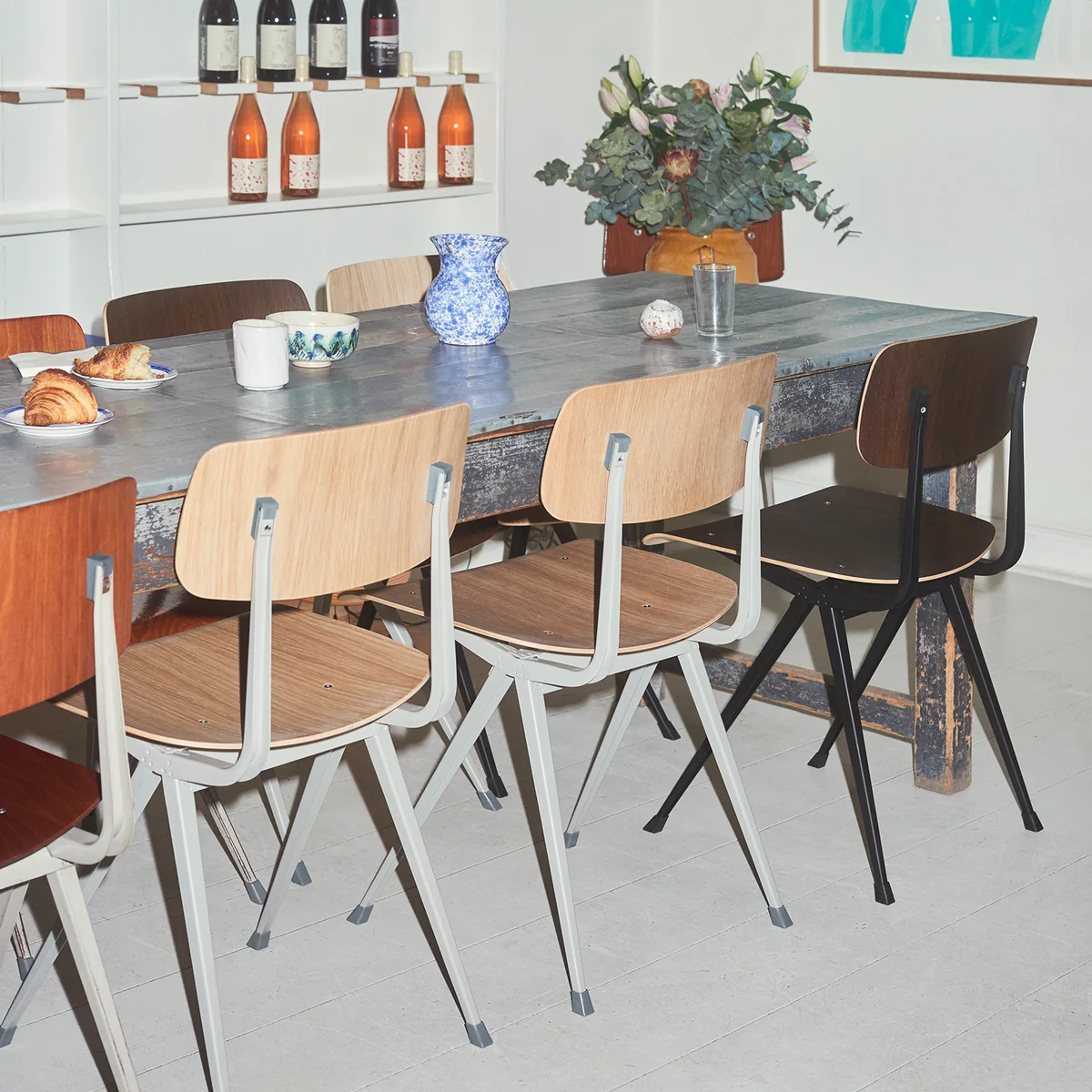 The Result chair was originally designed in 1958 by Friso Kramer and Wim Rietveld in the Netherlands. The matching Pyramid collection followed one year later. For the new edition HAY cooperates with Ahrend, the original manufacturer of the furniture.