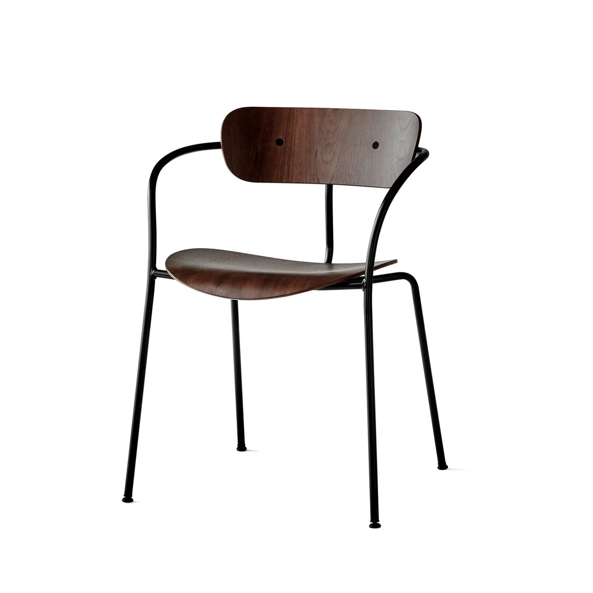 The Pavilion armchair by Anderssen & Voll for &Tradition has a light, lyrical, graceful silhouette from every angle. The chair is made from bent tubular steel and moulded plywood. Frame, seat and backrest are optically aligned and create a chair that can be timeless and elegant in any setting. Its soft, generous curves and the filigree tubular steel of the frame make it a real eye-catcher. The chair works particularly well at the dining table in the kitchen, at the desk in the bedroom but also in modern cafés and stylish hotels.