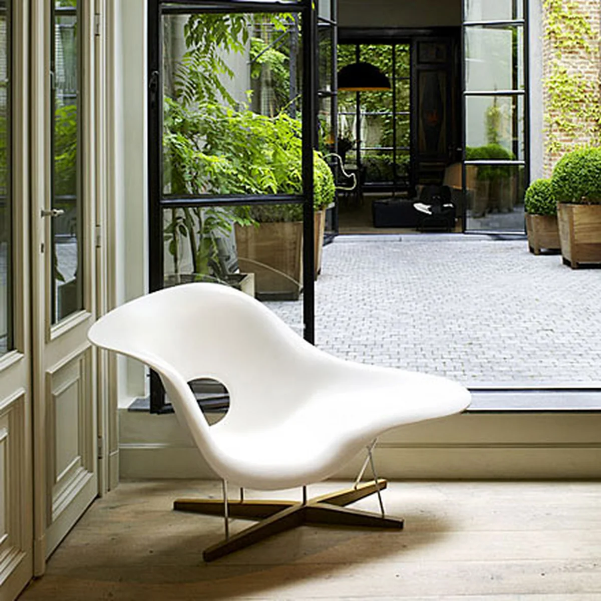 Charles and Ray Eames designed La Chaise in 1948 for a competition at the Museum of Modern Art in New York, inspired by "Floating Figure", a sculpture by Gaston Lachaise. It is the unbelievable elegance of this assertive seating sculpture that enables any number of sitting and reclining positions, which is so very appealing. It has long since established itself as an icon of Organic Design.