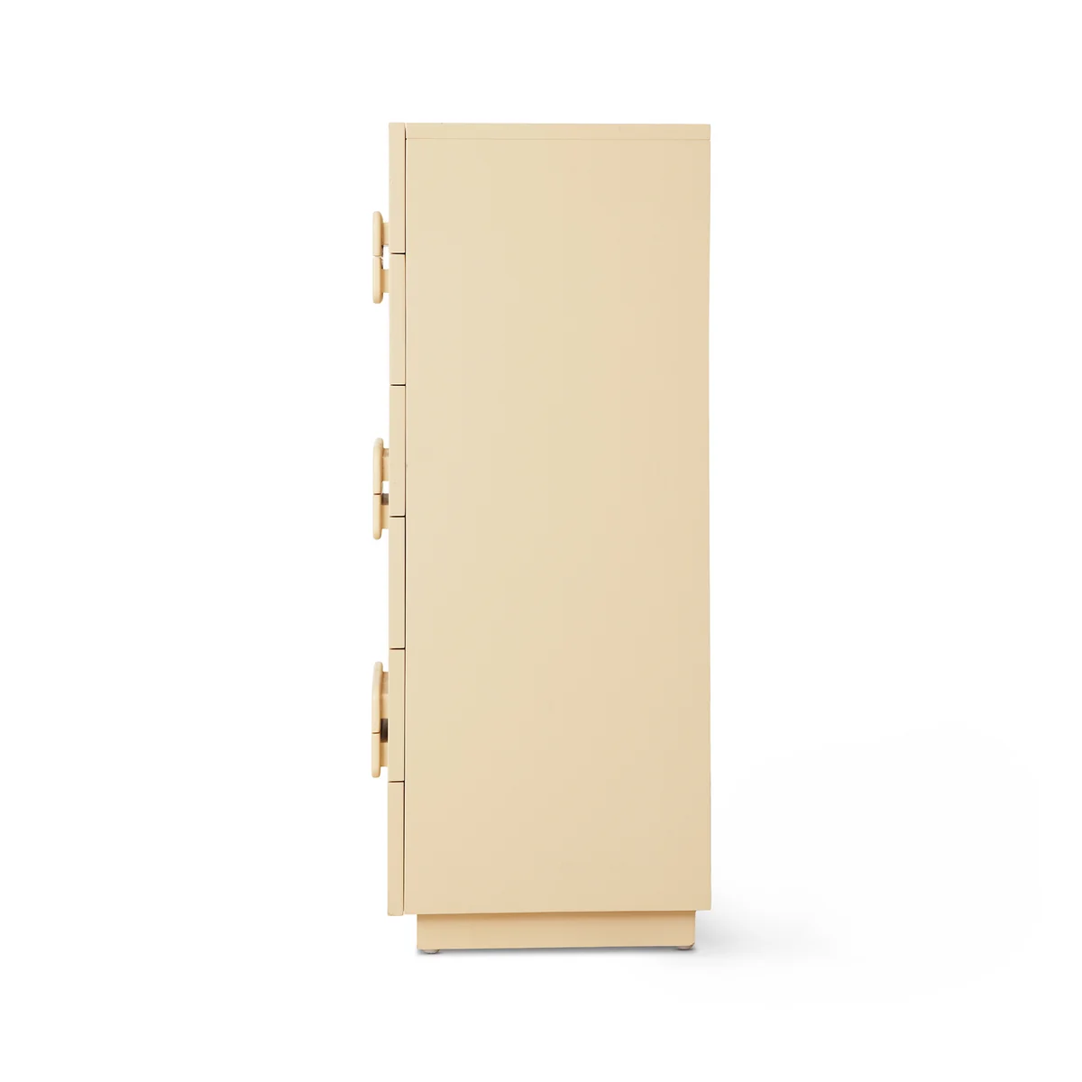 The Spacious chest of drawers from HKliving brings stylish elegance and practical functionality to your home. In a striking army green, this elegant wooden chest of drawers impresses with clear lines and a timeless silhouette that blends harmoniously into both modern and classic living environments. Cleverly designed handles combine form and function, making the chest of drawers not only a visual highlight, but also an efficient organizer. Ideal for adding a subtle splash of color to your room and at the same time providing clear storage options.