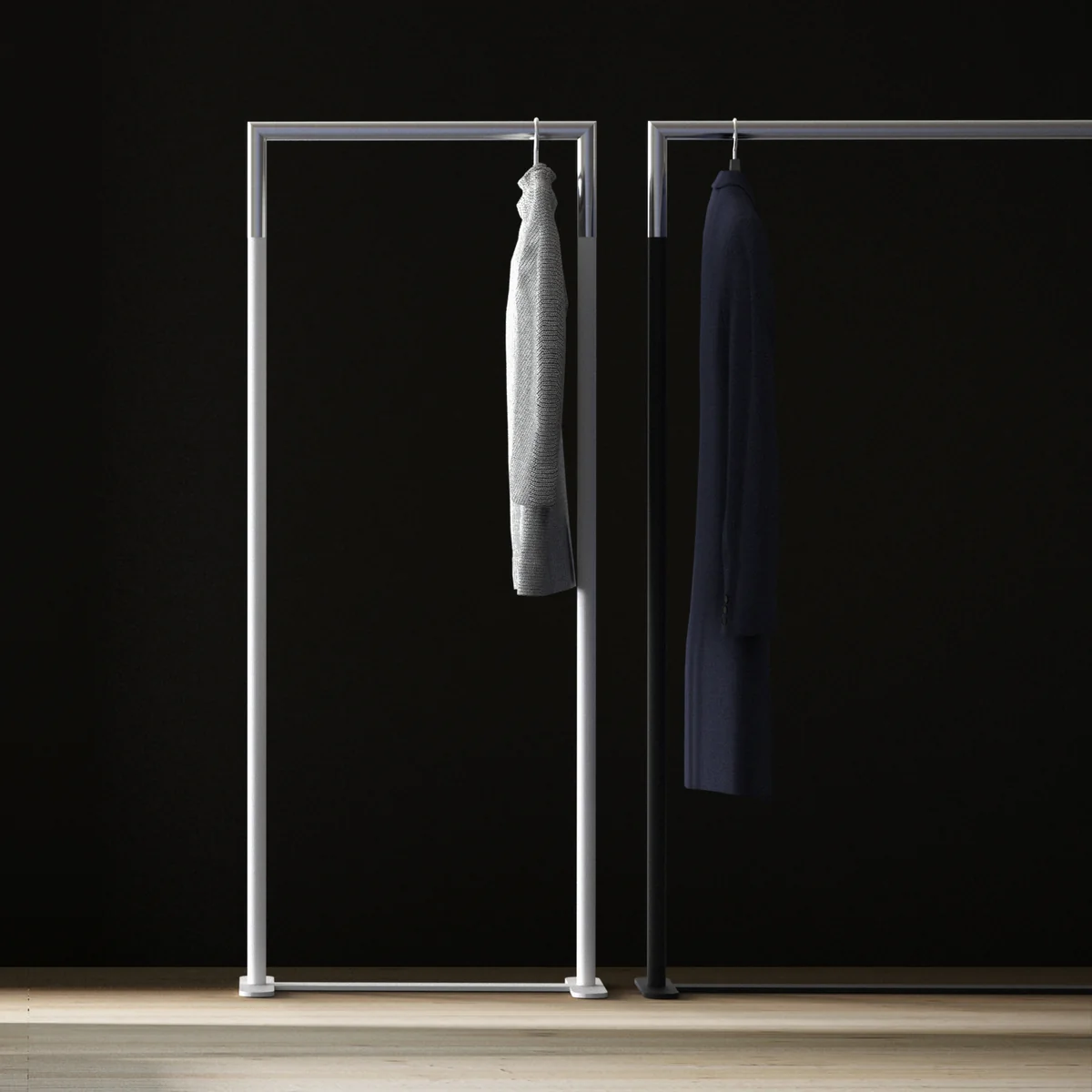 The Bukto clothes rack is a space saving helper designed by Bønnelycke for the Danish manufacturer Frost and it emphasizes the clothes in it with charm. The edgy clothes holder is made of polished stainless steel and can be ordered with a white or a black foot. Different dimensions can be combined.