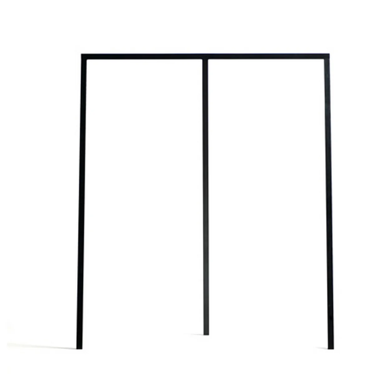 The three-legged coat rack is a simplification of the industrial sawhorse. Made of powder-coated steel, it is available in two different sizes. The smaller one is called Loop Hall, the larger one Wardrobe. Jackets, shirts and other clothing can easily be stored on the crossbar, which is supported by the three legs, using a clothes hanger.
