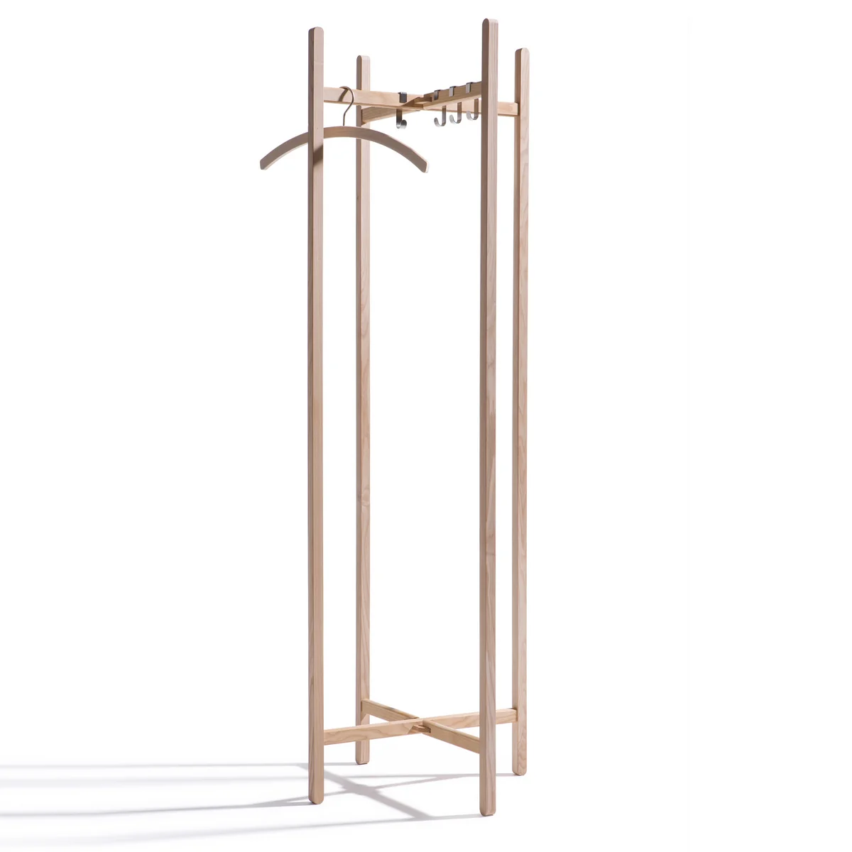 All this without compromising on design: the side by side New Hang On is pleasurably discreet. Hangers are easily hung off of the rails. Moreover, side by side offers a set of hooks for the coat rack, so that every piece to be hung gets a suitable place on the solid ash New Hang On.