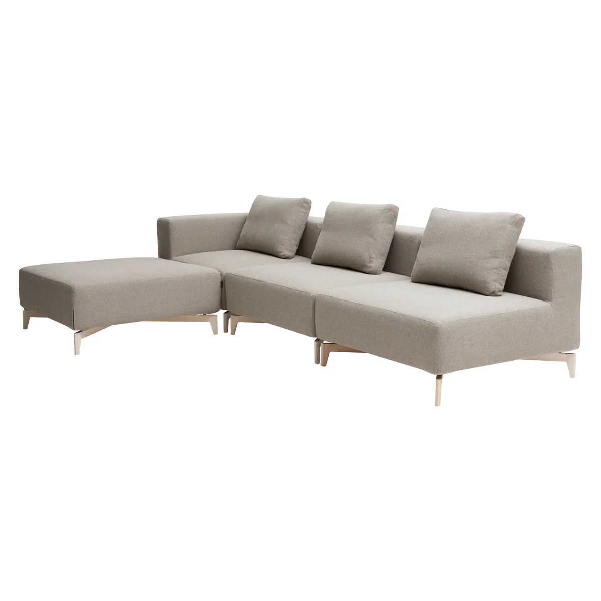 The modules have ash wood frames. A foam upholstery makes the sofa comfortable, which is available with covers in different fabrics and colours. The modules are securely and firmly connected to each other with Velcro. Cushions are included with the individual and corner elements.