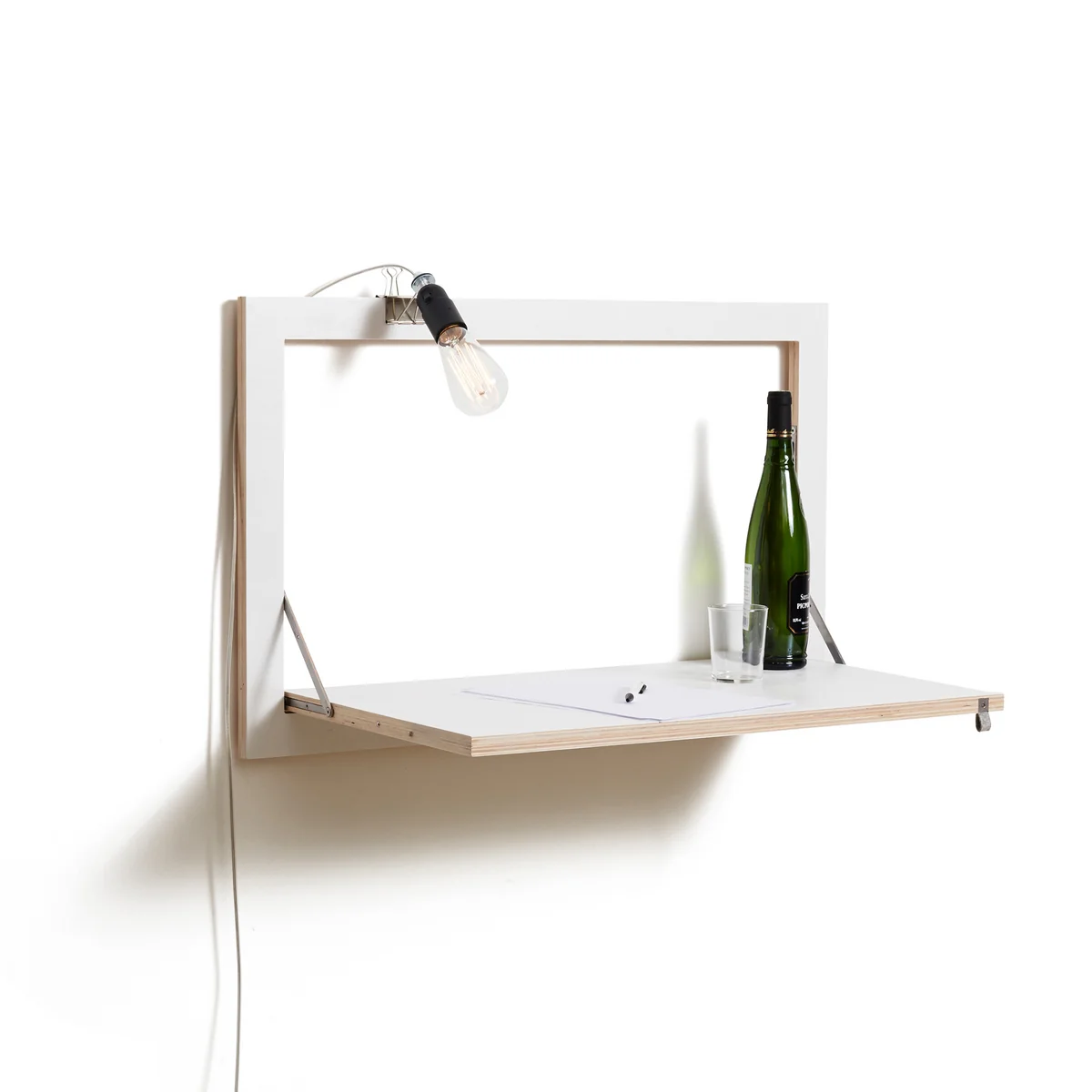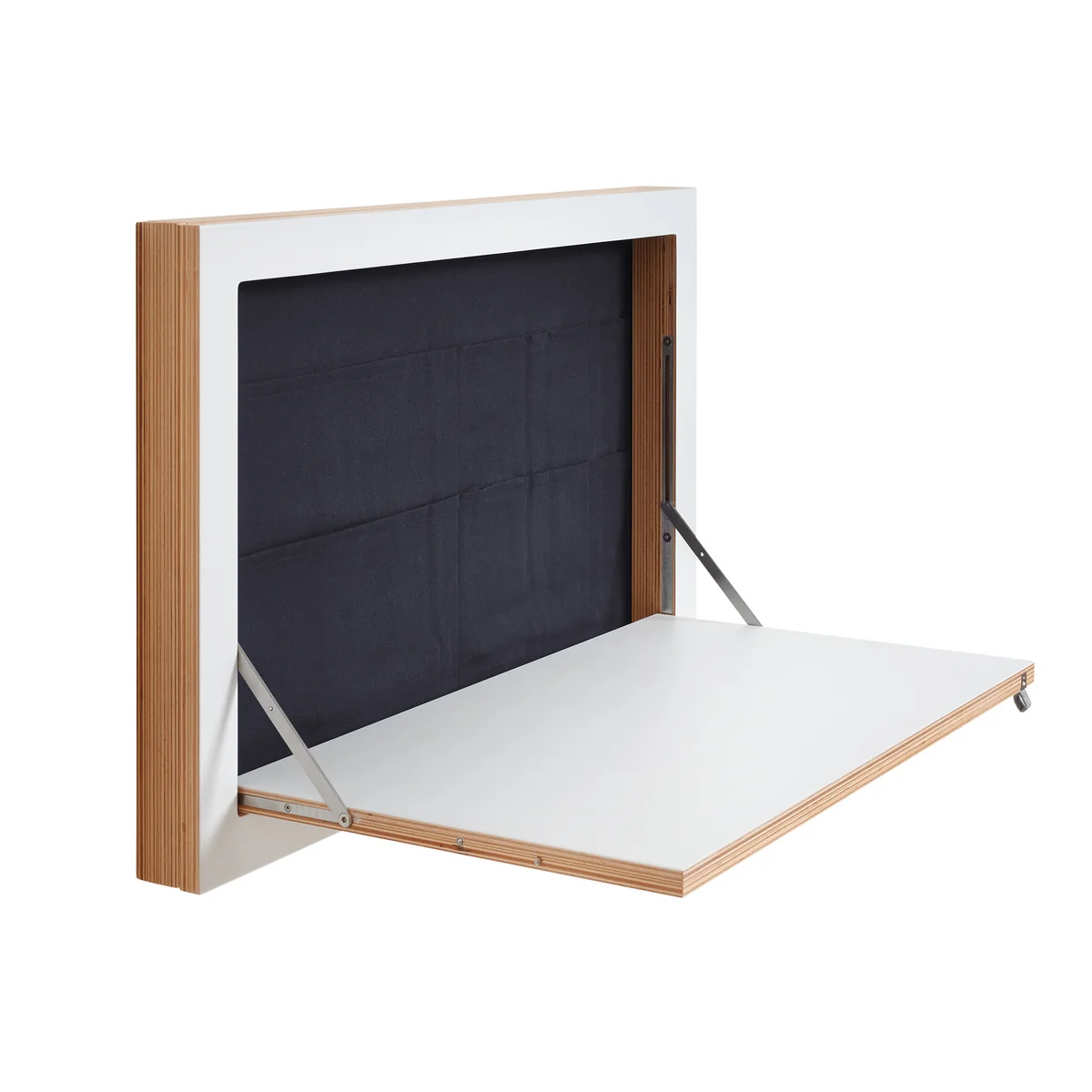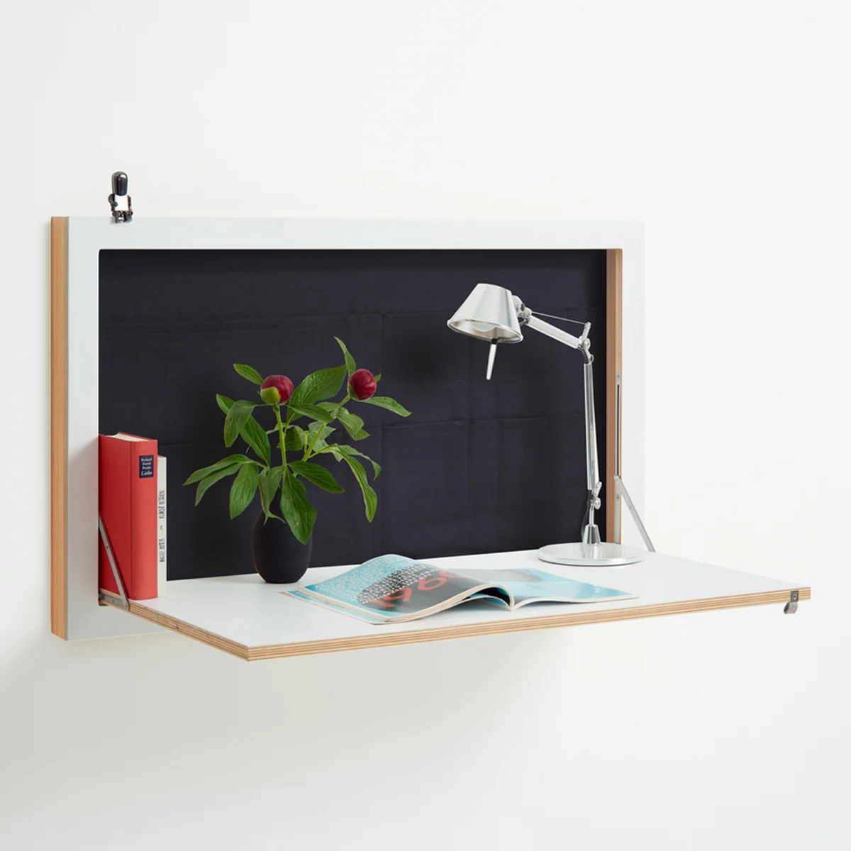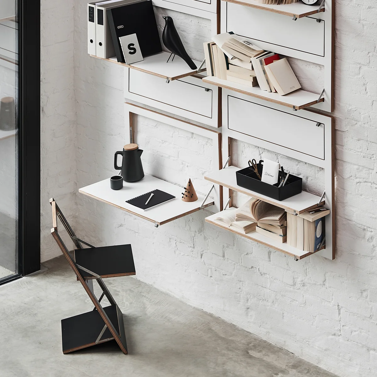 The Fläpps Secretary from Ambivalenz is a foldable secretary for the wall. Folded in, the secretary convinces with an extremely thin overall depth, but only unfolded it unfolds its full potential.