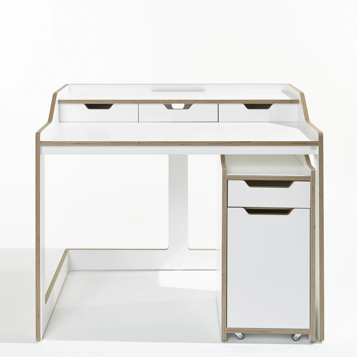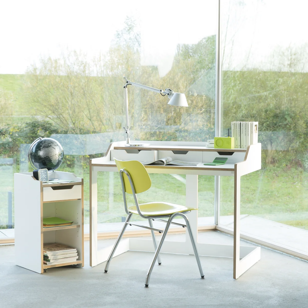 The Plane Desk is also available with a walnut front as well as with black edges. Müller Small Living also provides a matching Rollcontainer for the series.
