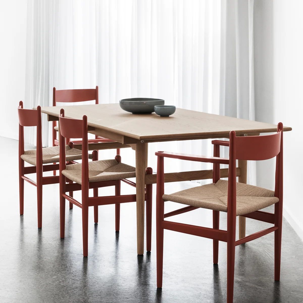 With dimensions of 190 x 95 cm, up to 8 people can find space at the CH327 and can dine together, sit together or discuss. The dining table is CH327 Dining table on request in other woods, oiled, lacquered, soaped or treated with white oil.