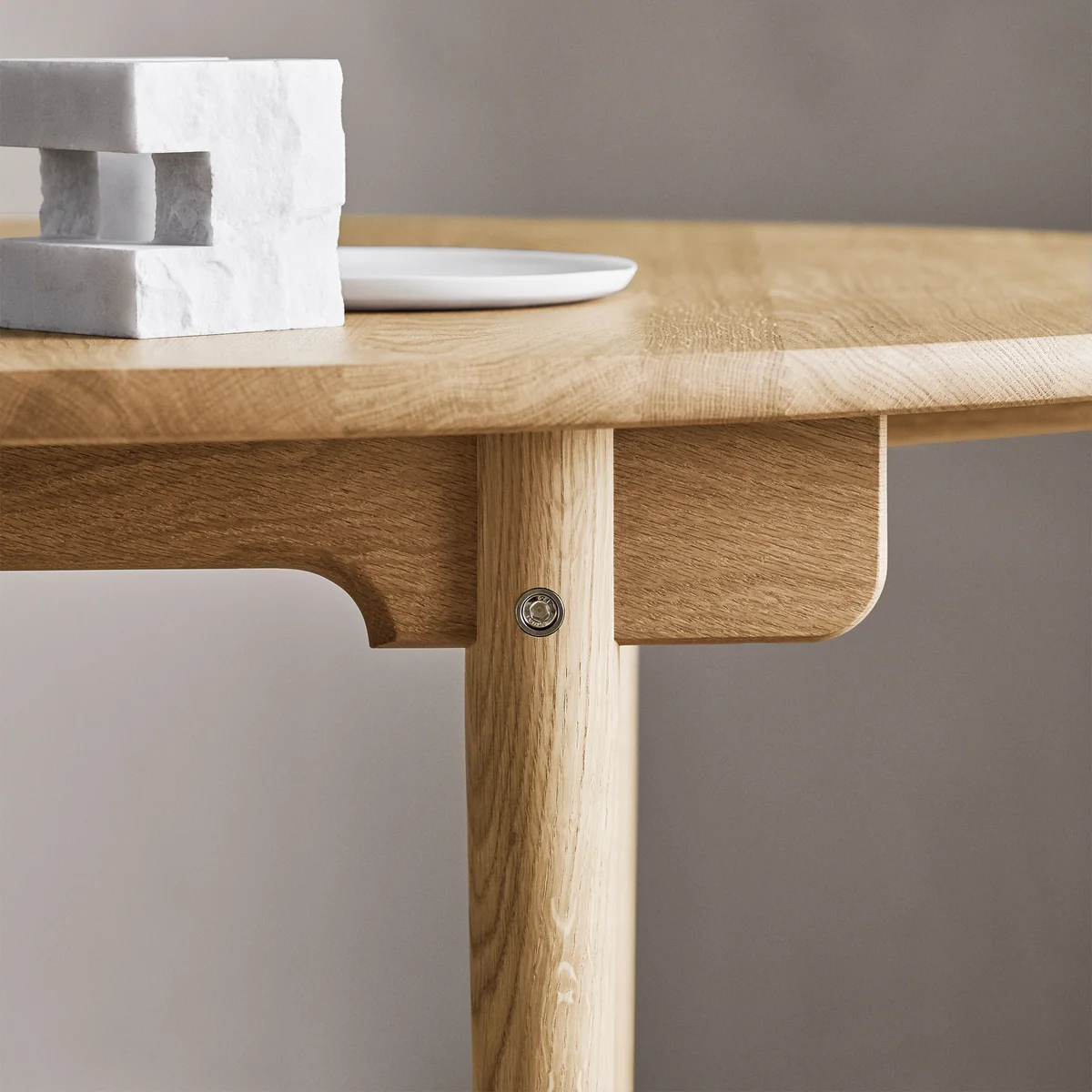 In 1962, Hans J. Wegner designed the dining table CH338 for Carl Hansen , creating a smart piece of furniture that fits into a variety of interiors. Measuring 200 x 115 cm, the table can seat 8-10 people, making it perfect for dinner parties with friends and family. If unannounced guests should ever come, this is also no problem, because the table can be easily extended with the help of two additional available extension plates (sold separately), so that another 4 people can attend the dinner.