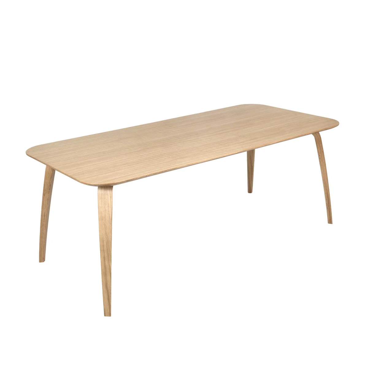 The clear, contemporary design is harmonious with the natural wood material out of which Gubi produces the dining table - a typical feature of Nordic design. The veneer production allows for an unusually slim shape, which makes the Gubi dining table appear very light.