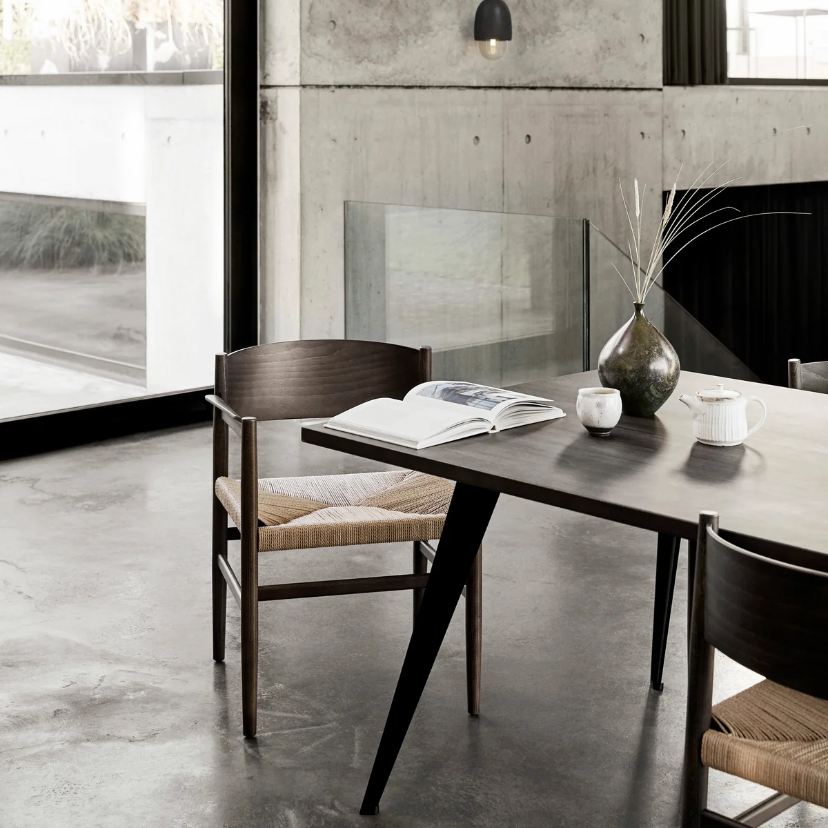 The Lignia Dining Table by Mater is a timeless design table with a sharp profile by designer Ayush Kasliwal. Its four solid steel legs hold the strong wooden table top and make the table to a high quality and durable furniture.