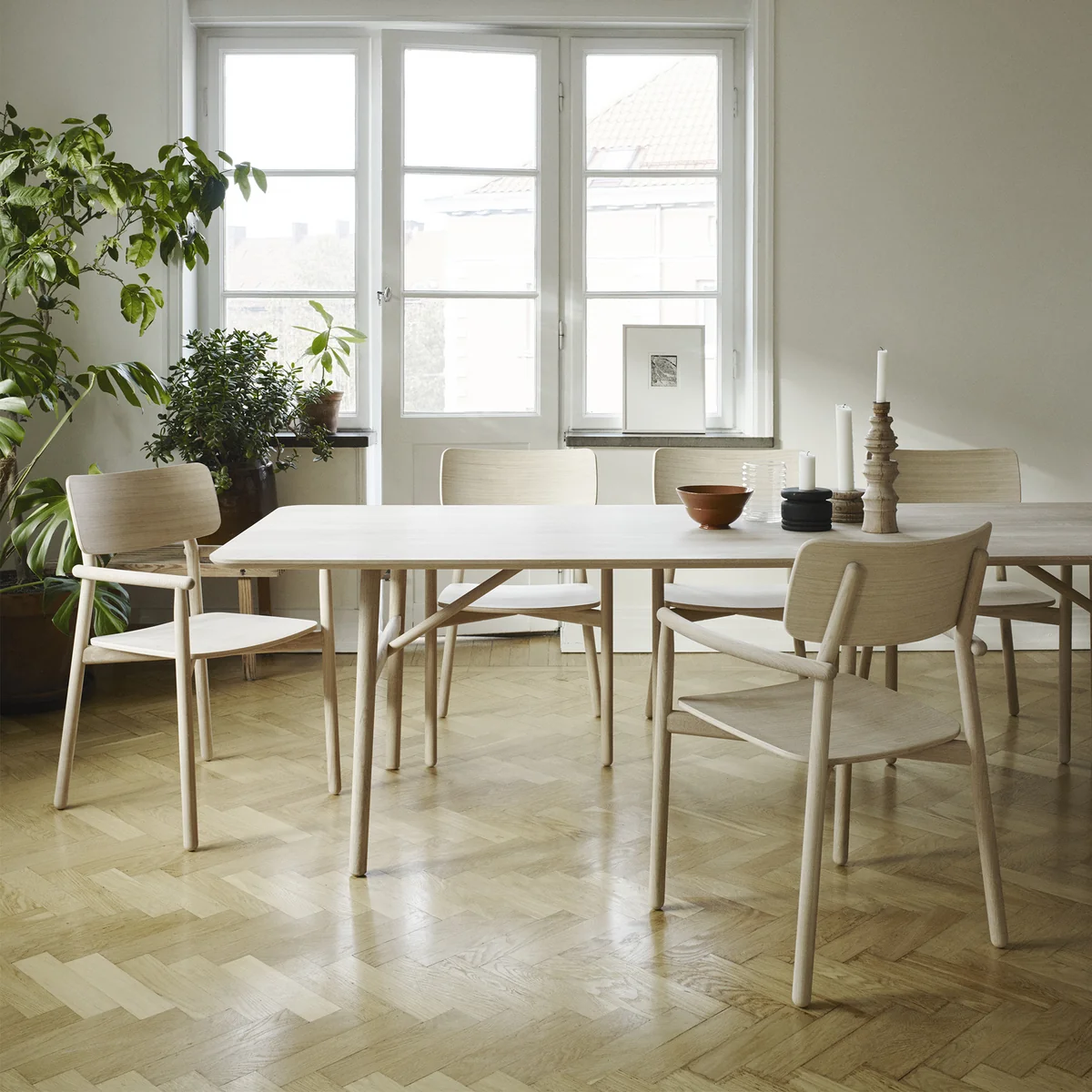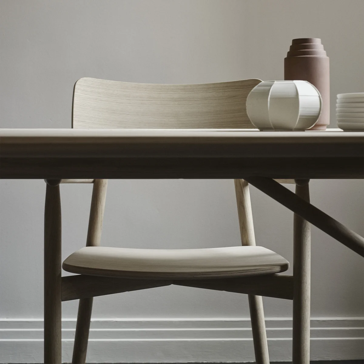 Similar to the island, the Hven series is a connection between the Swedish designer, who grew up in Landskrona with a direct view of the small island, and the Danish manufacturer. The series includes tables and chairs that are symbolic of coming together at the dining table. The products are made entirely of wood and convince with their refined curves that give the solid material a certain lightness.