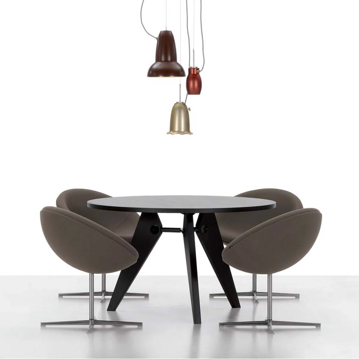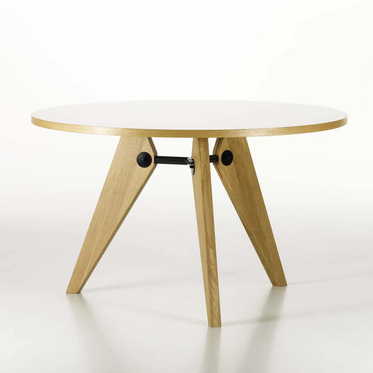 Jean Prouvé succeeded in creating a table that is still modern today by cleverly combining simple means: a heavy top rests on three legs made of solid oak. The table legs are strong and accentuated, as in some other designs by the Frenchman. This also gives the Guéridon dining table produced today by Vitra visual stability, while the clear appearance of the table makes it both timeless and modern.