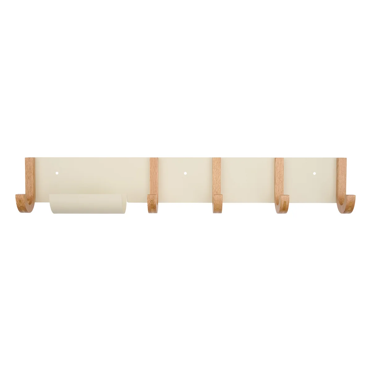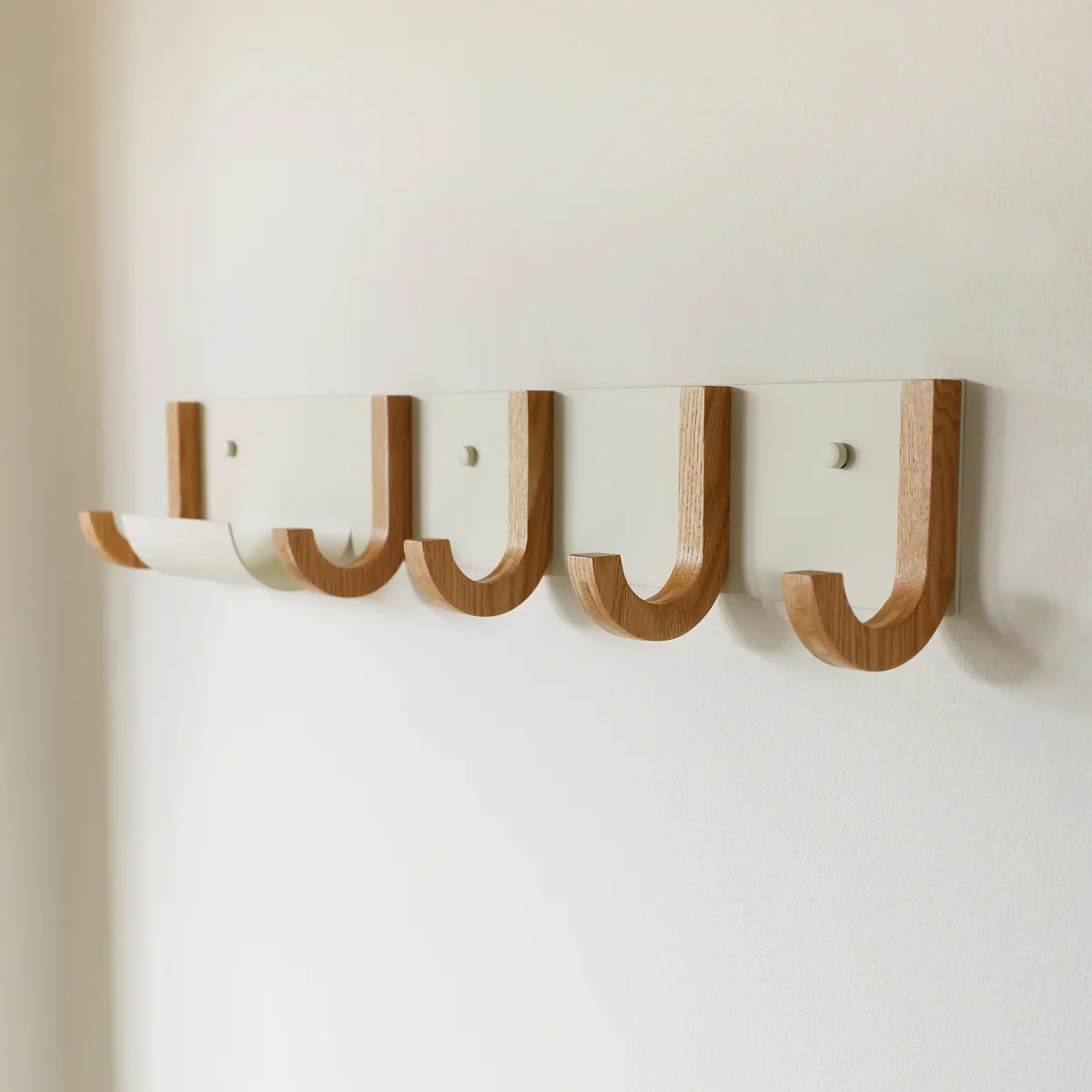 The Jay coat rack from Design Letters is a classic, minimalist coat rack with four to five hooks and - depending on the version - a small, practical shelf that is perfect for storing items such as keys, purses or umbrellas. Thanks to its spacious design, each hook offers plenty of storage space and is therefore suitable for both small entrances and large halls.