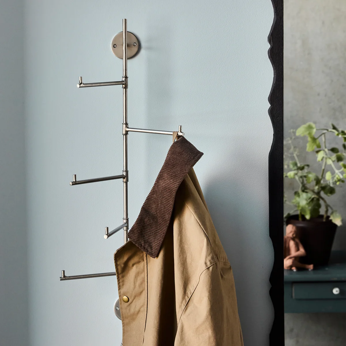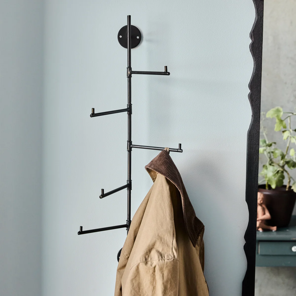 The Flex hook rail from House Doctor combines sculptural aesthetics and practical versatility. Handcrafted from robust iron, it impresses with its durable quality and minimalist design that is an eye-catcher in any room. Particularly clever: the rotating hooks can be flexibly adjusted - ideal for jackets, bags, scarves or accessories. Whether in the hallway, bedroom or dressing room, the hook rail keeps things tidy and makes a stylish statement at the same time.