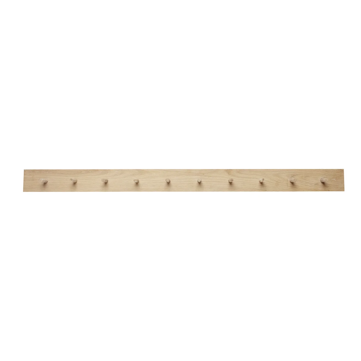 The hook rail from Hübsch Interior is a simple yet versatile coat rack for any room: depending on the version, jackets, coats, decorations, bags or accessories can be hung on the 4 or 10 hooks. With its natural wooden look, the hook rail fits into every room and every style of furnishing: Whether for towels in the bathroom, for jackets in the hallway, for bags in the dressing room or for stylish decoration in the dining room - the hook rail comes into its own.