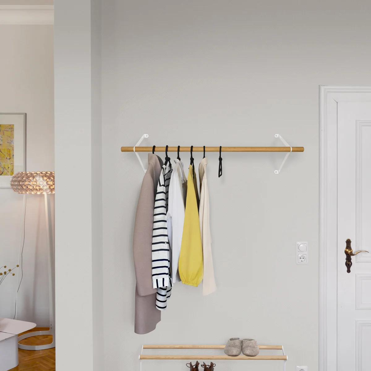 Simple and yet modern: The Lilli Wall mounted wardrobe by vonbox blends discreetly into any hallway and skilfully sets the clothes hanging on it in scene. There are hardly any limits to its function, because Lilli can be individually extended with the help of further rod modules (also available here).