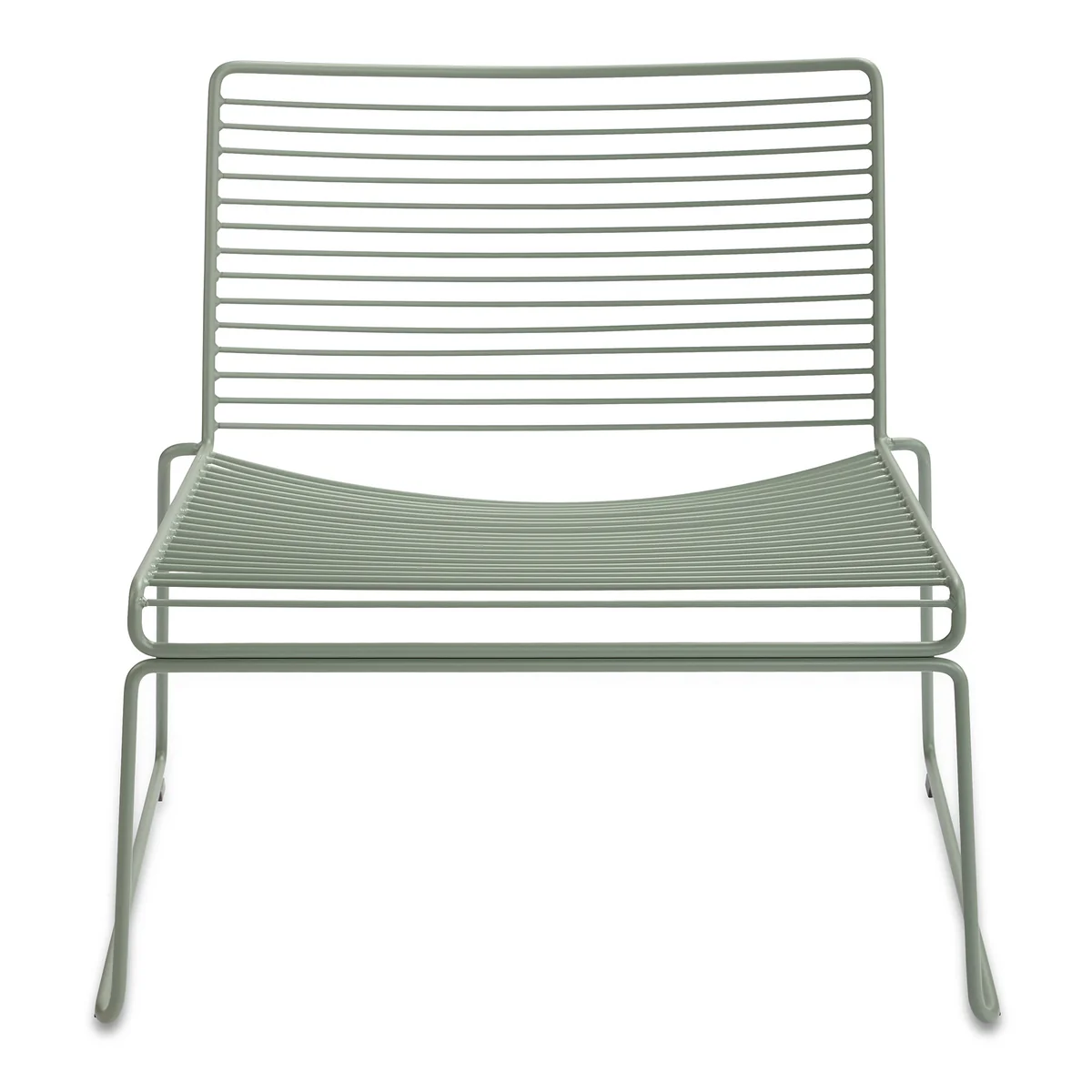 Finding a balance was also crucial in the design. In order to combine functionality and aesthetics at a high level, exactly the right wire thickness had to be chosen. The Hee chairs, the bar stool and the lounge chair are made of 11 mm thick metal wire and their shape is reminiscent of a sketch, a three-dimensional pencil drawing.