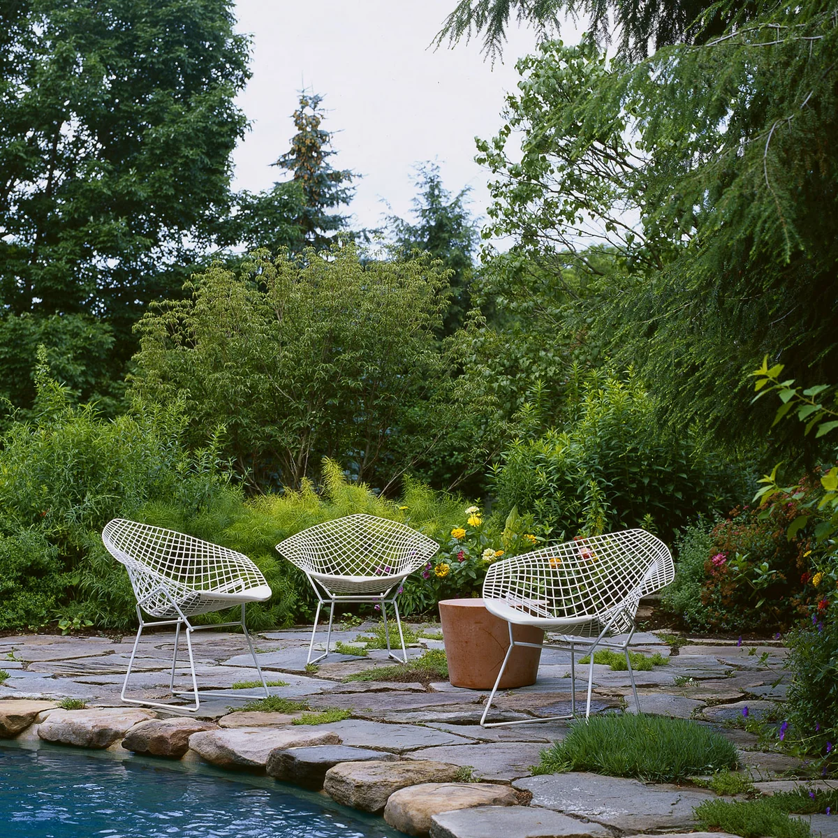 Whether chromed, satined chromed, or with plastic coating (Rilsan-protection coating), the wire mesh of the Harry Betoia designed and Knoll produced Diamond Chair served as inspiration for generations of growing young designers.