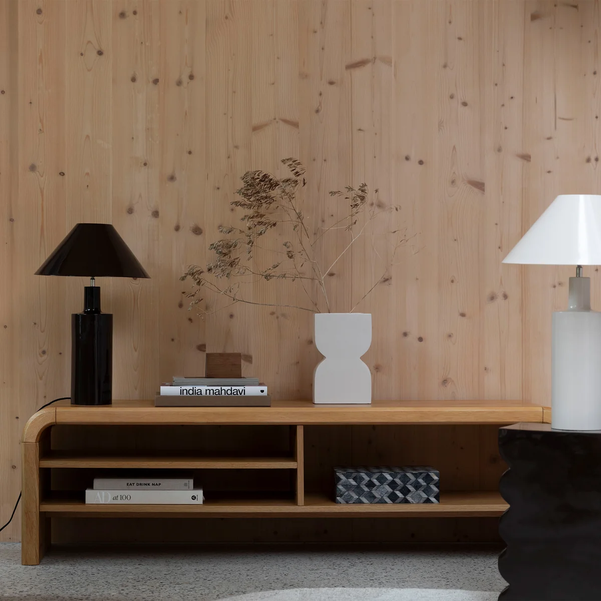 The Brave TV bench combines clear lines, smooth edges and elegant curves to create an expressive piece of furniture with natural charm. Made from oak veneer and solid rubberwood, it combines stability with an elegant, understated look.