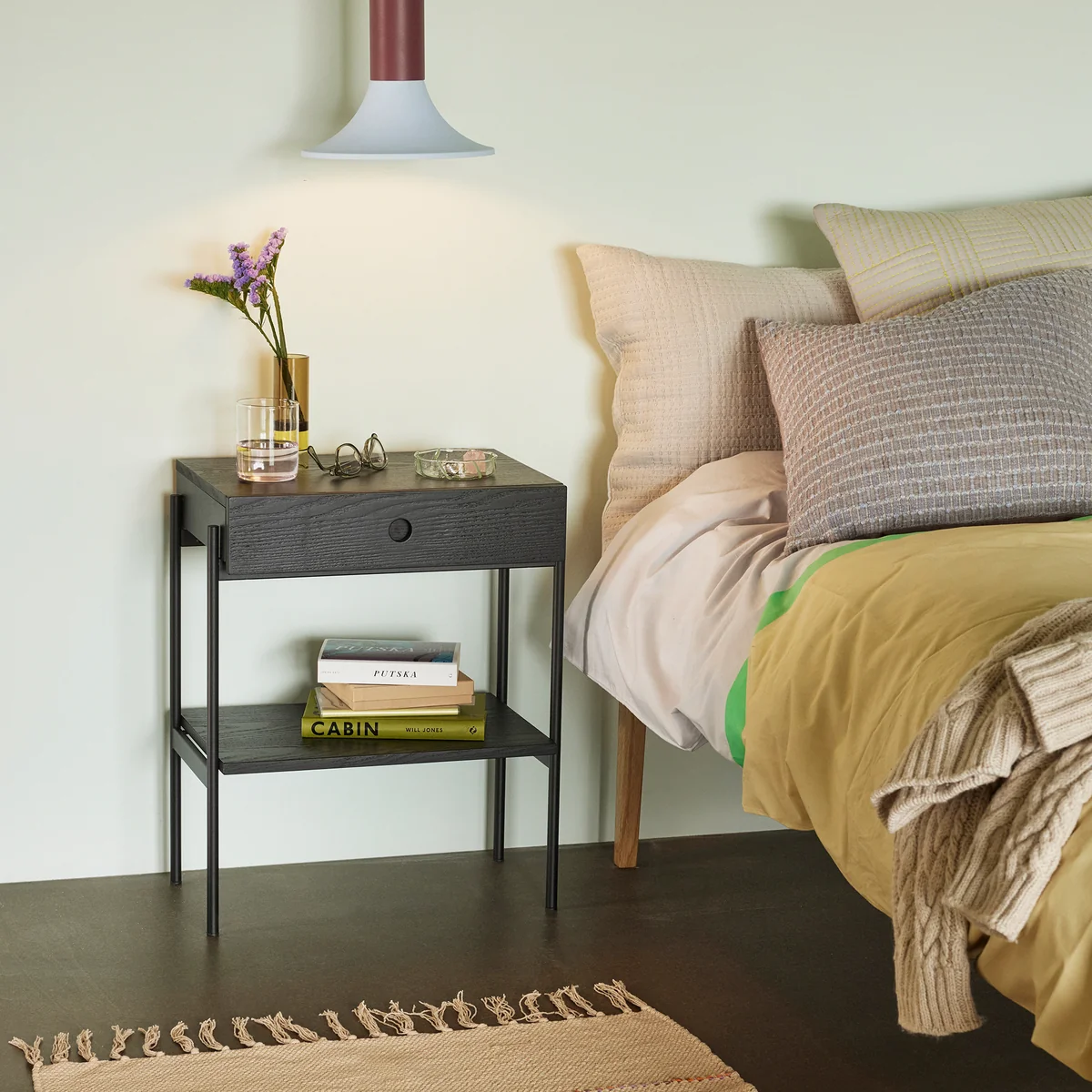 The Noir bedside cabinet not only impresses with its simple beauty, but also with its functionality. Equipped with practical drawers or shelves, it offers plenty of storage space for personal items such as books, a lamp or your most important utensils that you want to have to hand at night. The minimalist shape creates a pleasant, calm atmosphere in the room.