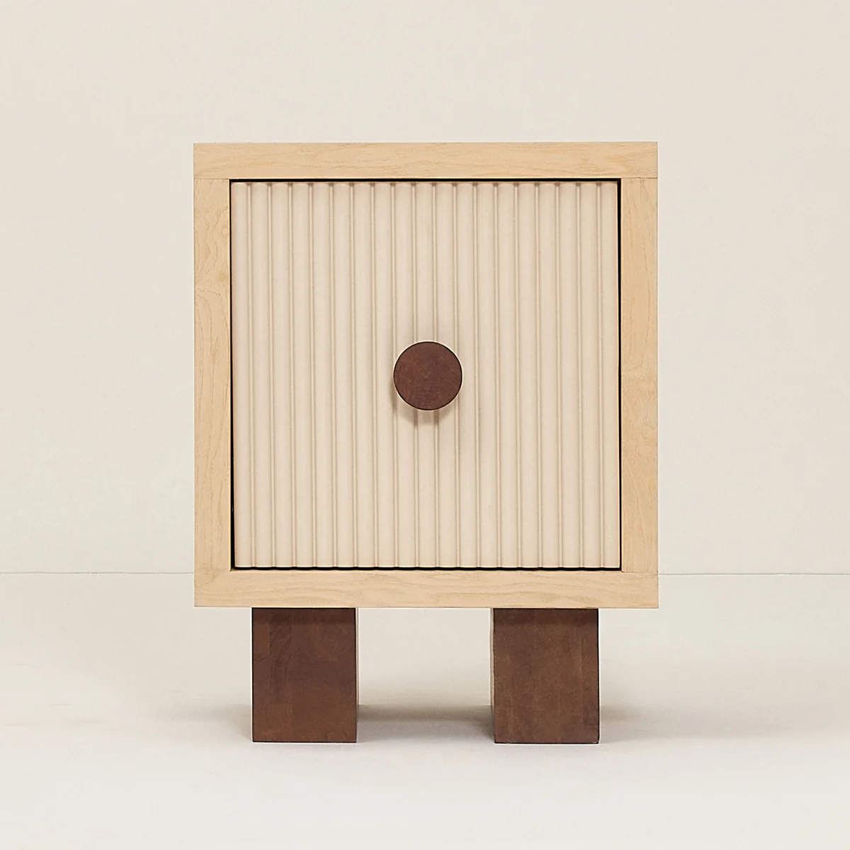 - High-quality wooden bedside table with textured details