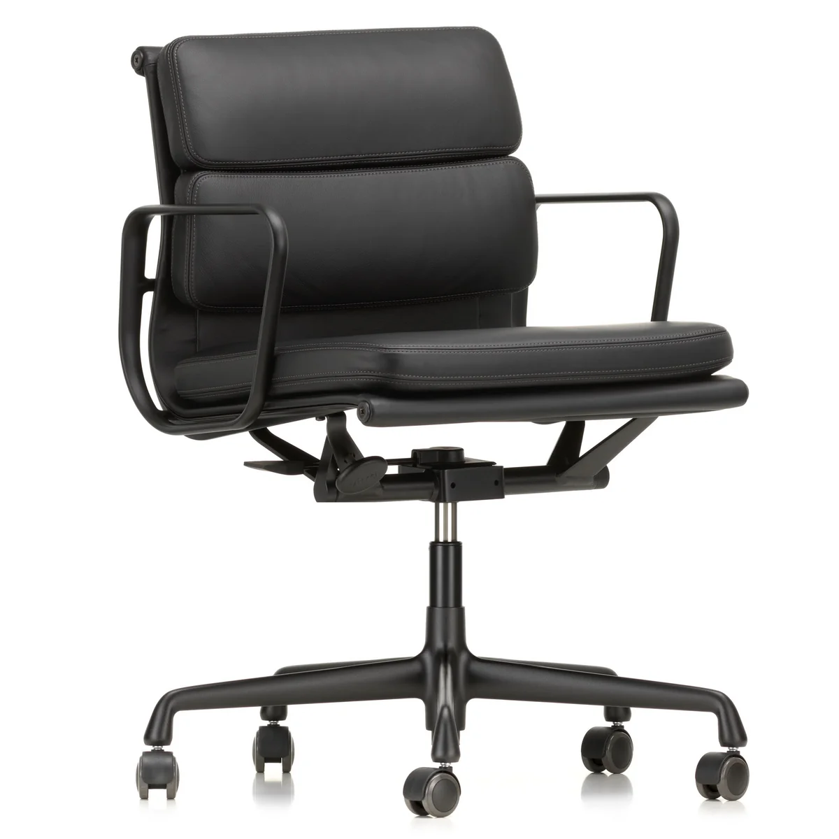 The EA 217 and EA 219 models are the office swivel chairs in the Soft Pad Group family of chairs by Charles and Ray Eames. Thanks to their prestigious appearance, they are particularly suitable for management areas. Their tilt mechanism can be adjusted to the user's weight and, in combination with the soft upholstery, offers a high level of comfort.