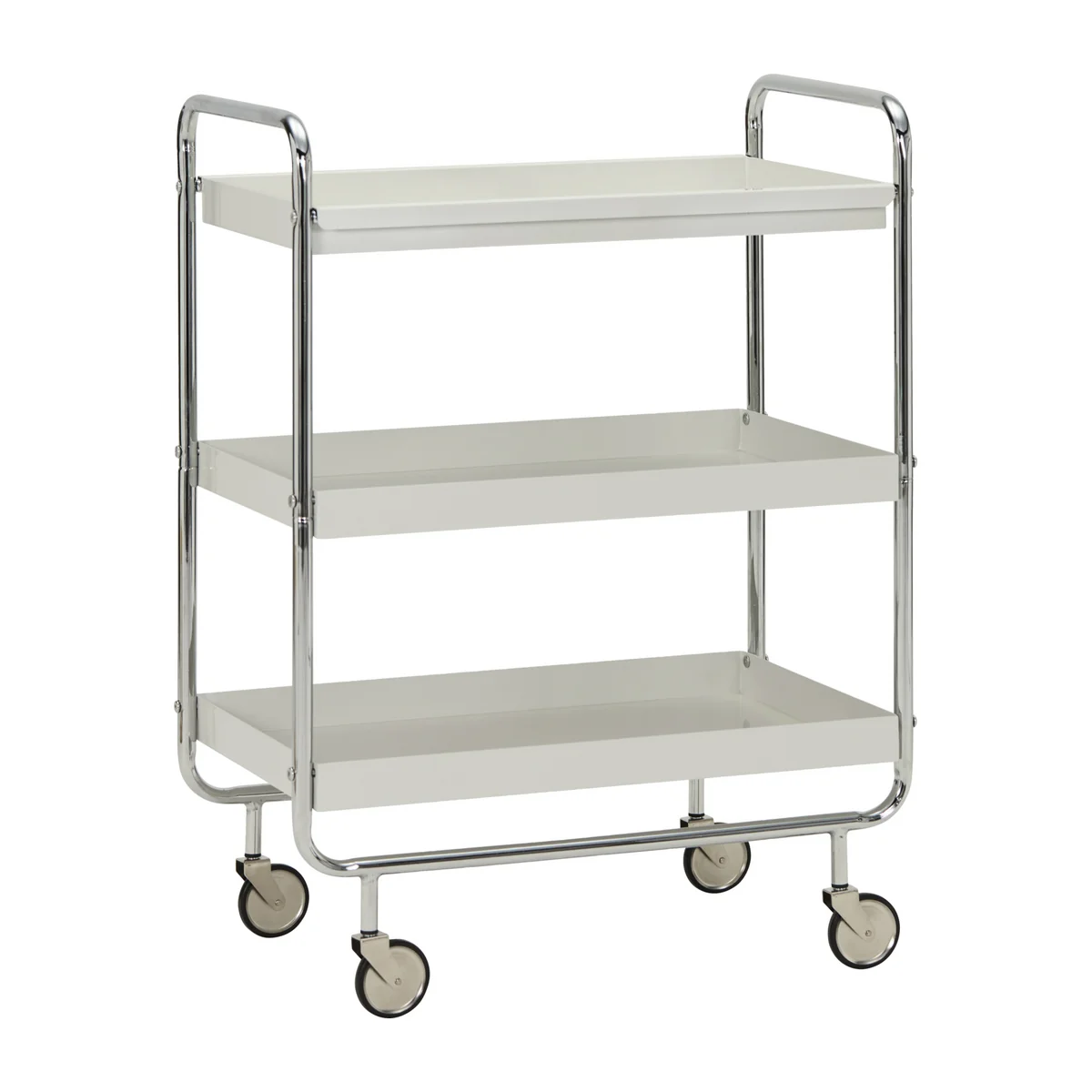 The Roll serving trolley from House Doctor is a practical and flexible trolley for the living area. The clever steel trolley is available in different colors and sizes with small, elegant wheels.