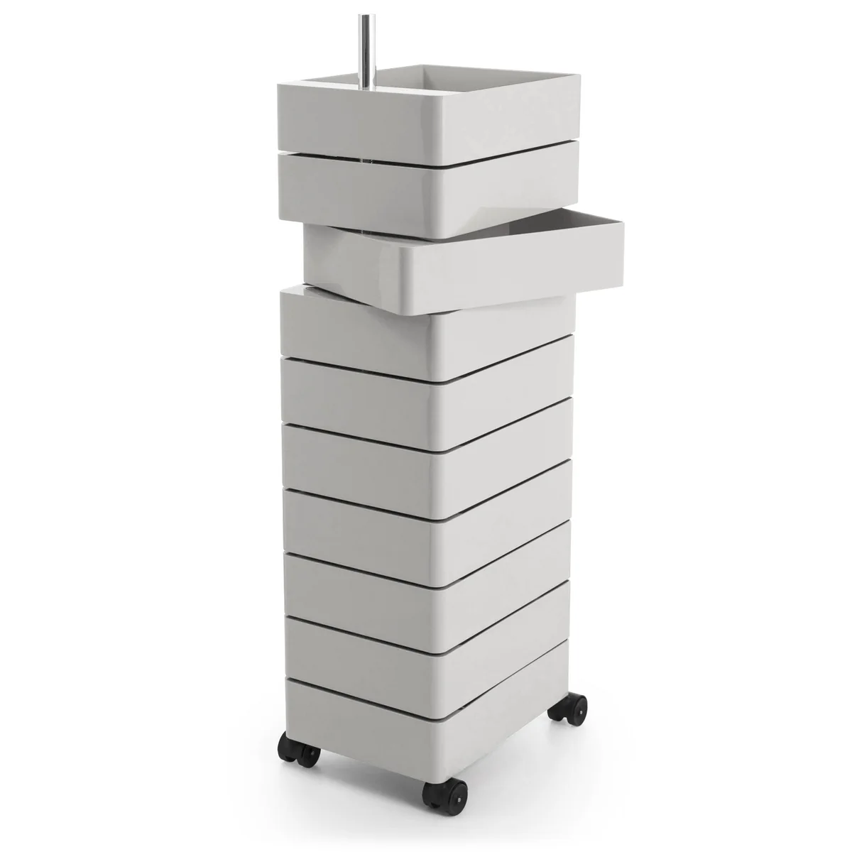 The 360° container was designed by Konstantin Grcic together with the chair of the same name for the Italian manufacturer Magis . The idea behind the drawer pedestal is to promote dynamic working. The individual drawers can be rotated around 360° and can be used from either side.