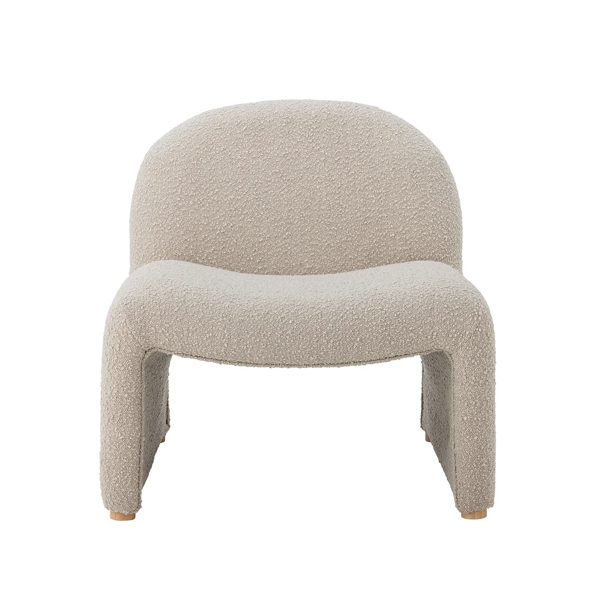 The Neel lounge chair impresses with its modern, sculptural design that adds an elegant touch to any interior. Covered in soft bouclé fabric in warm cream white, it combines comfort with stylish aesthetics. The rounded shapes and wide seat ensure a relaxed seating experience - ideal for cozy hours in the living room or a quiet reading corner. Its minimalist design and soft lines make it a real eye-catcher.