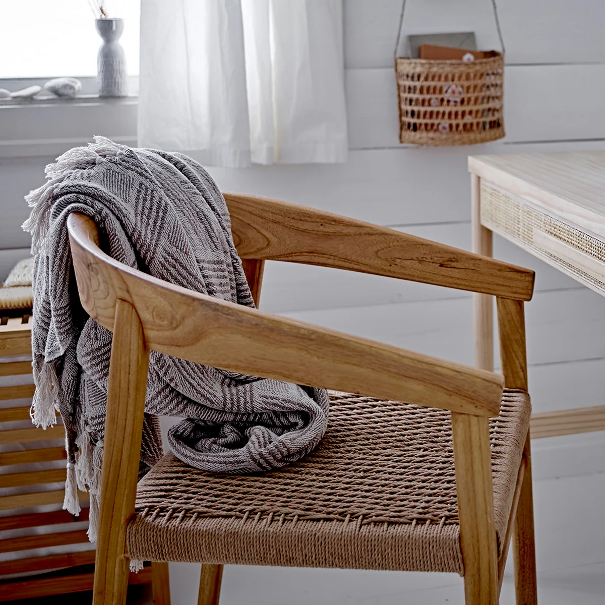 The Vitus armchair from Bloomingville is what you can confidently call a timeless chair. Its armrests merge into the curved backrest, and the woven seat adds stylish accents. Whether as a chair at the dining table, or as an additional seat at the kitchen table or in the hallway: The Vitus armchair is ideal for any ambience.