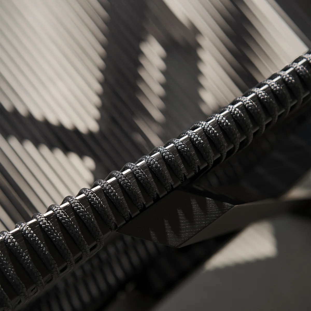 The Volkshaus Lounge Chair embodies a reductionist aesthetic that focuses on the essentials. Inspired by the design of the Volkshaus Basel, this lounge chair impresses with its filigree construction, clear lines and an airy, covered seat and backrest.