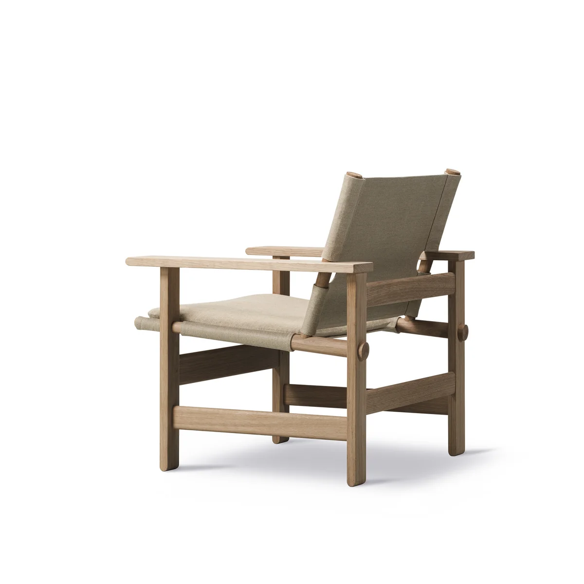 Mogensen was already ahead of his time with his armchair, simple design in response to a complex environment. Canvas is a timeless piece of furniture, which has clear references to traditional safari chairs. Due to its simple, sleek design language fits in any type of interior. Canvas by Ferdericia is made oak wood, the cover is made of linen canvas.