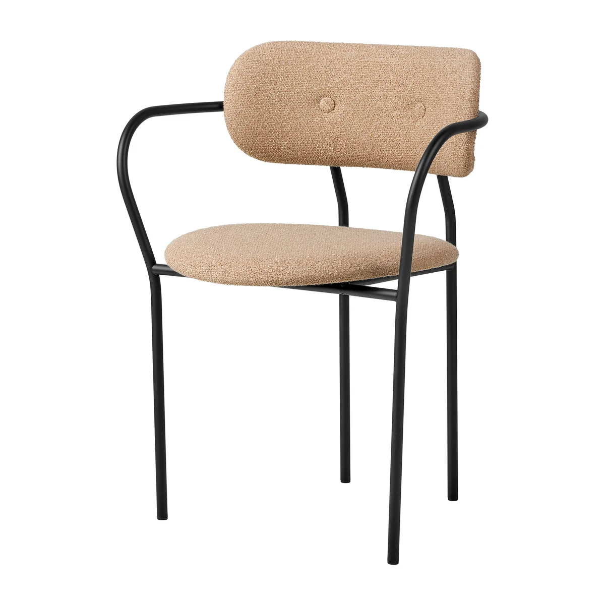 The Coco Dining Armchair from Gubi embodies timeless elegance and modern comfort. With its organically shaped seat shell and sleek, elegantly curved legs, this chair exudes a harmonious balance between form and function. The armrests provide added comfort and support, while the choice of different materials and colors allows the chair to match any interior style. Whether in a stylish dining room, a cozy café or an elegant office, the Coco Dining armchair adds an inviting and aesthetically pleasing atmosphere to any room. Gubi has once again proven with this chair that design and comfort can harmonize perfectly.