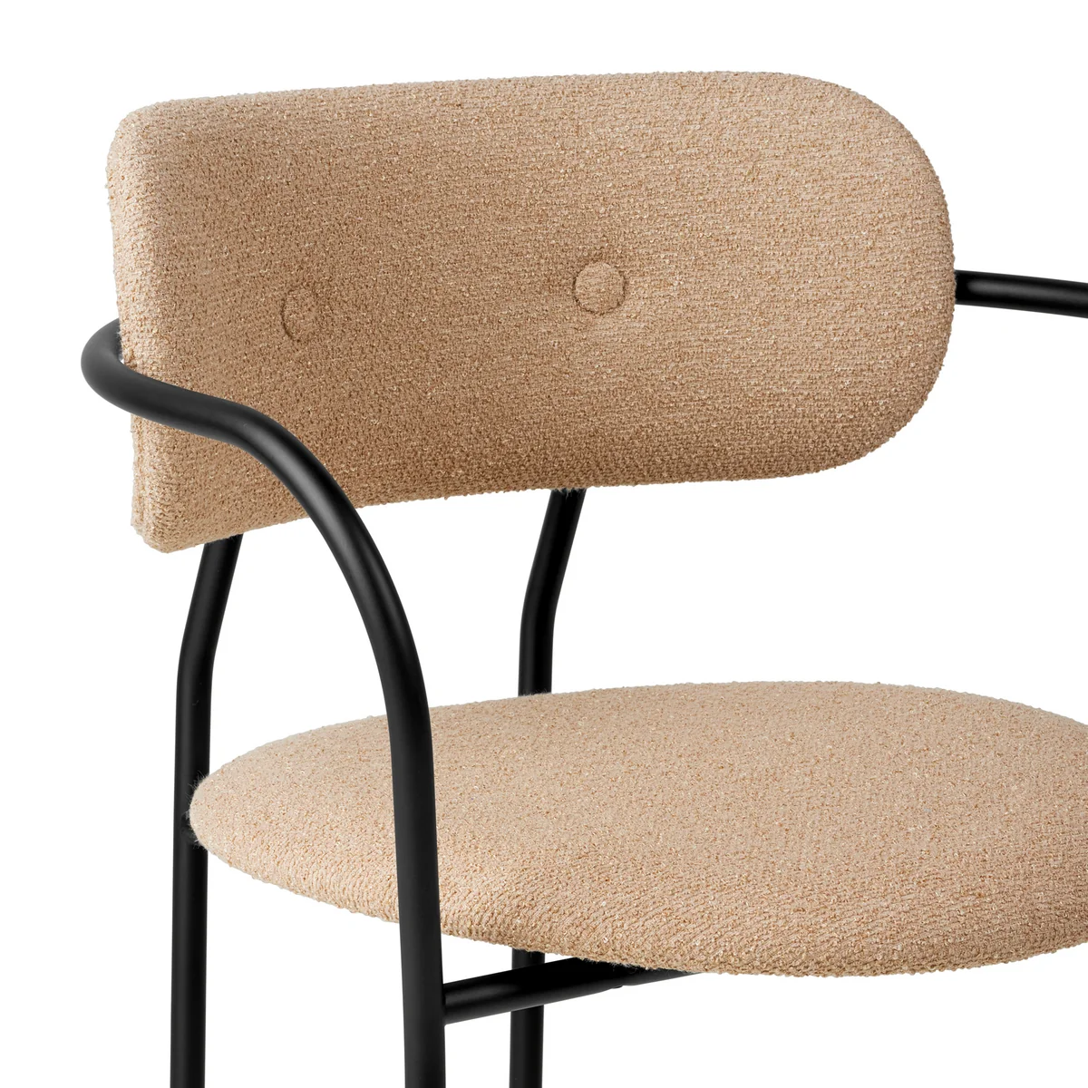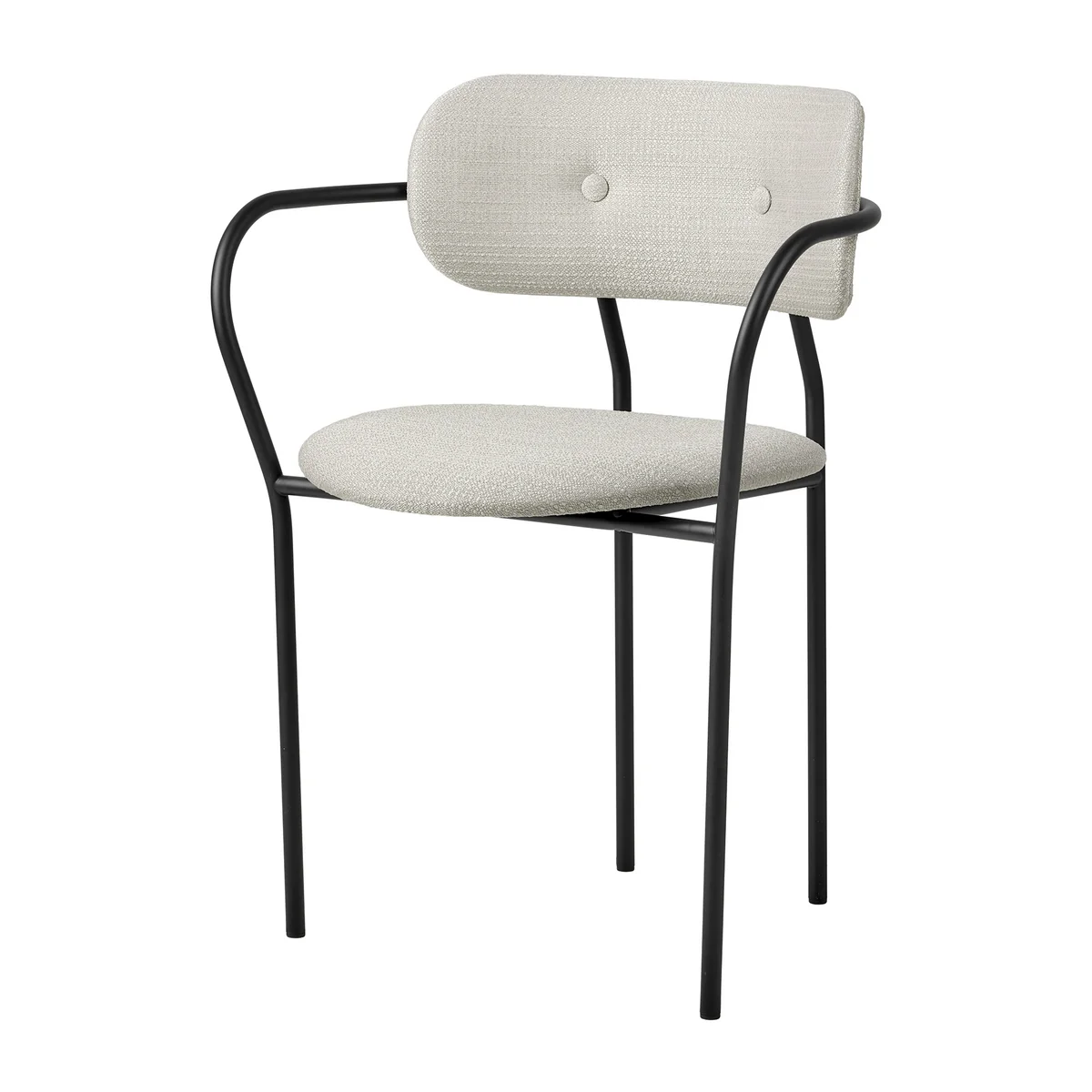 The Coco Dining Armchair from Gubi embodies timeless elegance and modern comfort. With its organically shaped seat shell and sleek, elegantly curved legs, this chair exudes a harmonious balance between form and function. The armrests provide added comfort and support, while the choice of different materials and colors allows the chair to match any interior style. Whether in a stylish dining room, a cozy café or an elegant office, the Coco Dining armchair adds an inviting and aesthetically pleasing atmosphere to any room. Gubi has once again proven with this chair that design and comfort can harmonize perfectly.