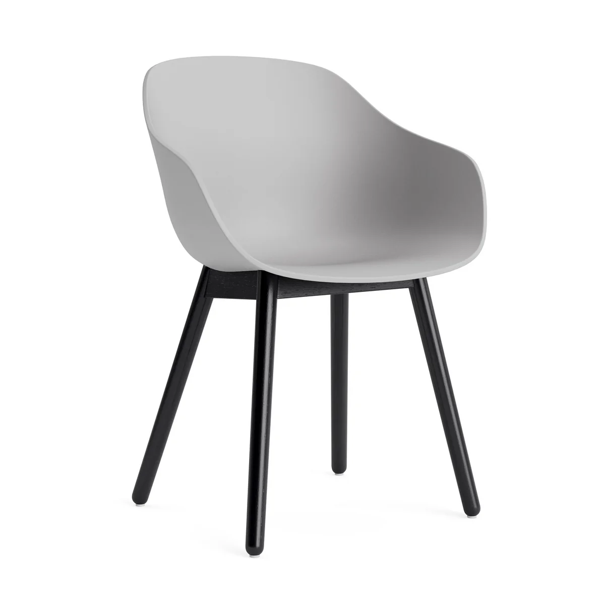 The About A Chair AAC 212 has armrests and a wooden four-legged frame. The non-upholstered seat shell is made of dyed-through polypropylene and the base frame is available in different versions, so that the chair can be presented in a single-colored, monochrome look or with a wooden base frame.