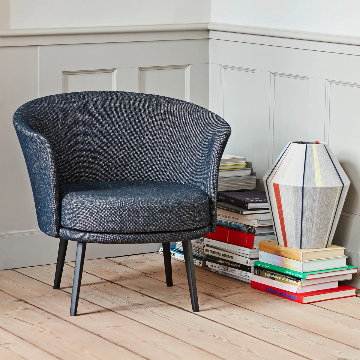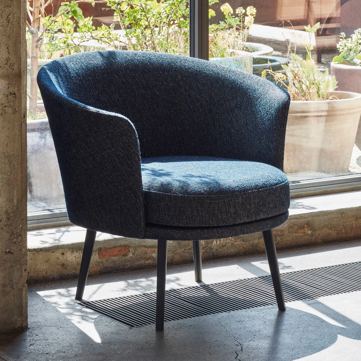 Inspired by the curves of a moving human torso, designer GamFratesi created this elegant armchair with a built-in swivel mechanism. Comfort and stylish relaxation are guaranteed here.