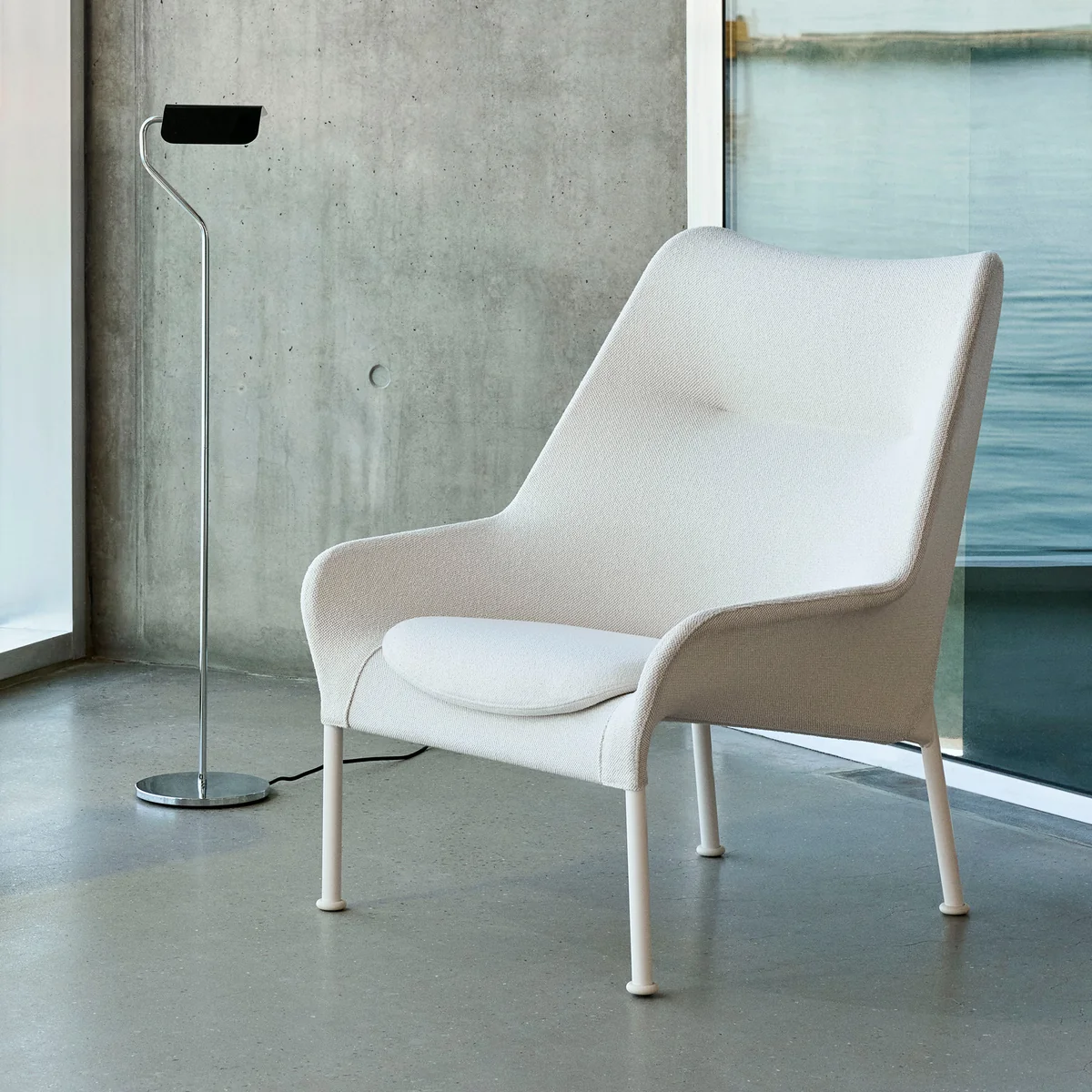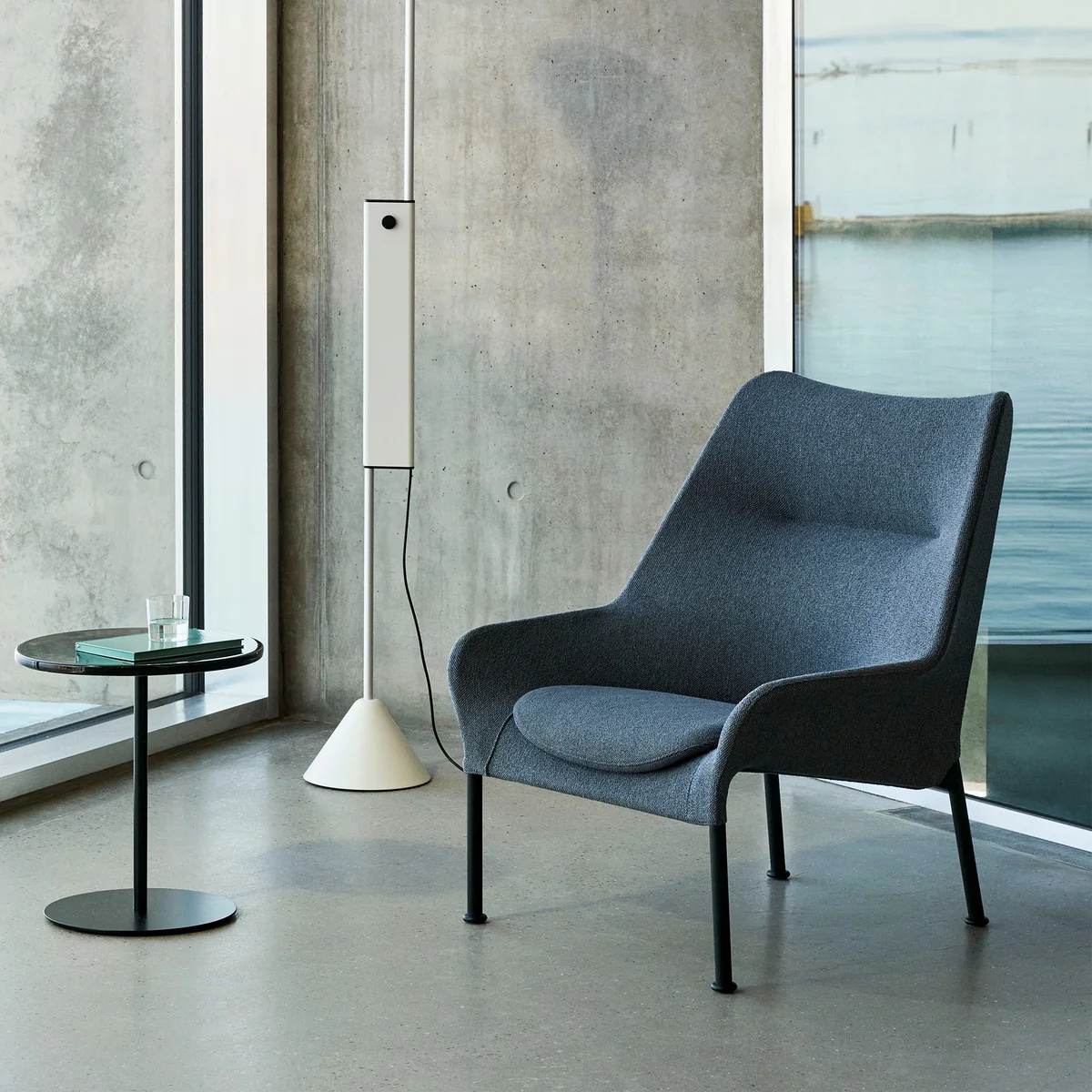 The O2 lounge chair from HAY , designed by Jonas Forsman, is a spacious and inviting armchair that impresses with its minimalist use of materials. Despite its sleek appearance, you don't have to compromise on comfort, stability or design. Thanks to modern material innovations and advanced manufacturing techniques, the armchair consists of a robust tubular steel frame covered with a self-supporting, shrink-molded fabric. This material gives the chair a voluminous, appealing shape that adapts flexibly to your posture while providing firm support - ideal for long moments of relaxation.