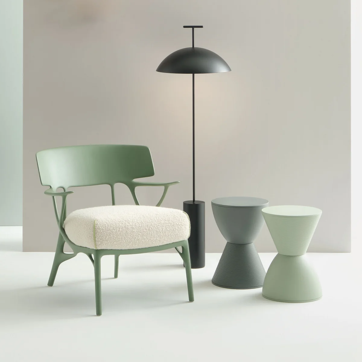 The A.I. Lounge Chair from Kartell combines innovative design and sustainable materials in a stylish piece of furniture. The chair was created by renowned designer Philippe Starck and developed in collaboration with artificial intelligence to achieve a perfect balance between comfort, stability and aesthetics.
