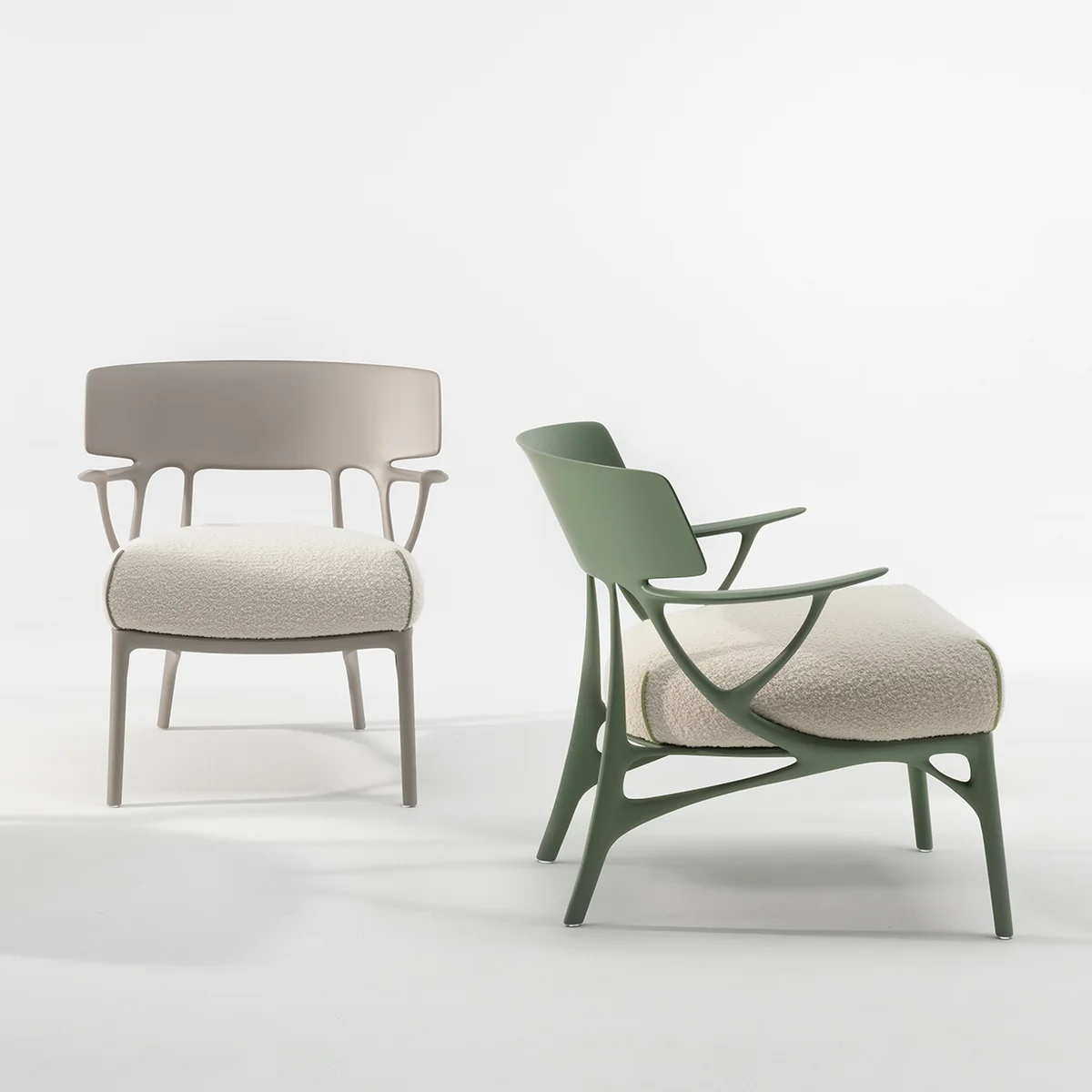 Made from 100% recycled plastic, the chair is A.I. Lounge Chair is not only environmentally friendly, but also suitable for indoor and outdoor use. With its organic shape and clean lines, the chair brings a modern elegance to any living or working environment.