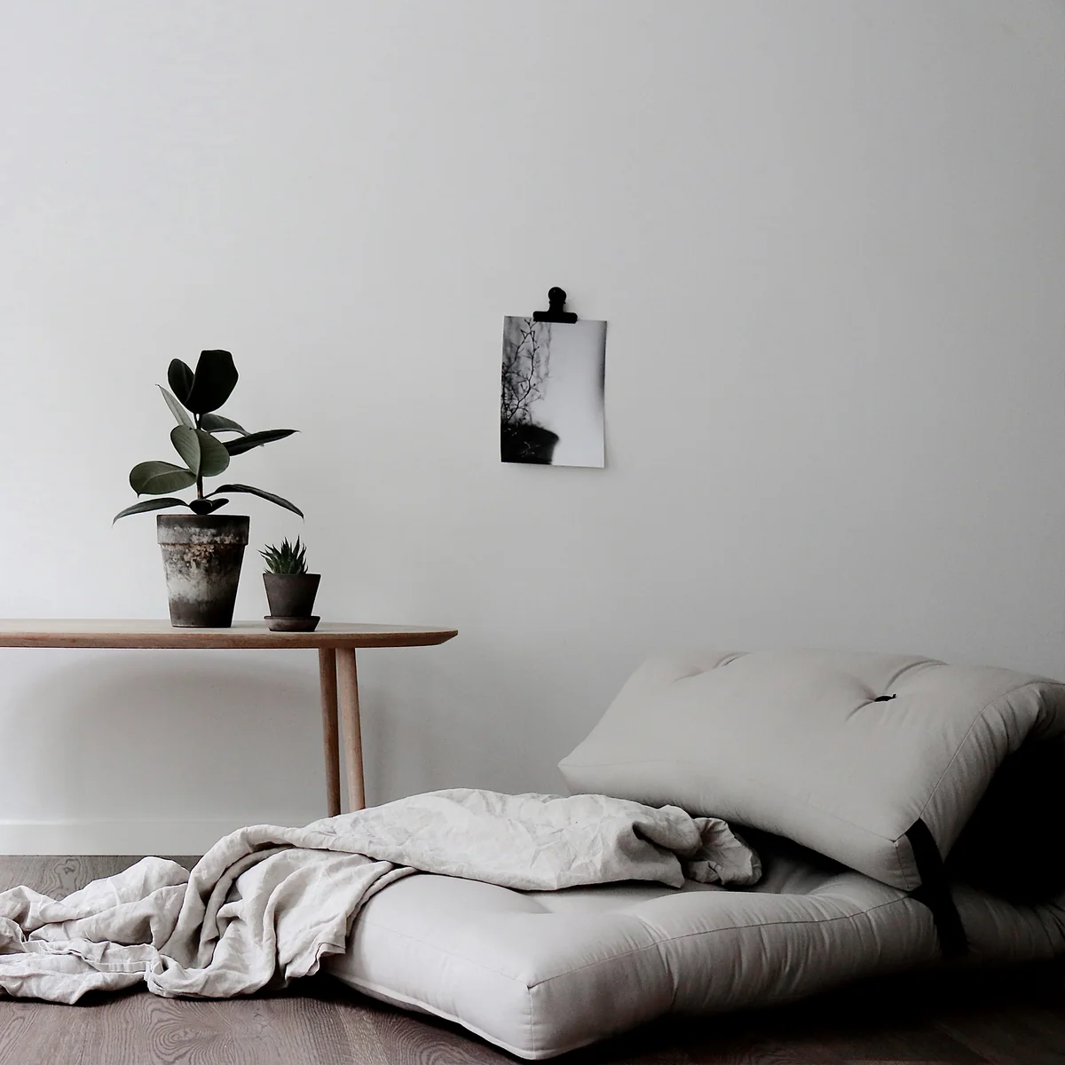 The cover of the futon armchair is made of 50% linen and 50% cotton and is available in different colours.