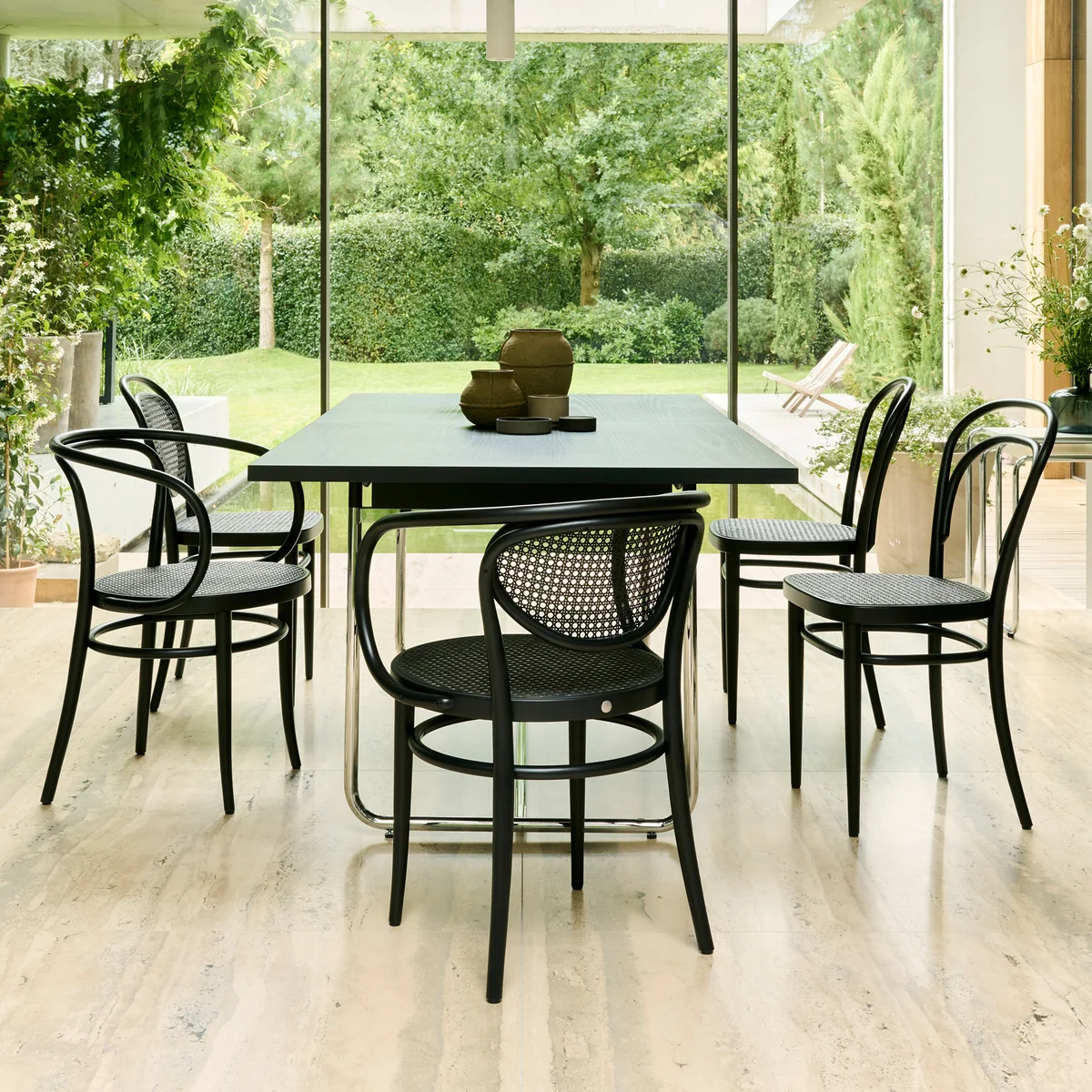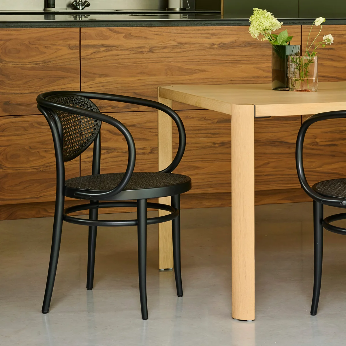 The 210 R armchair, designed around 1900 by the Thonet brothers, is considered a masterpiece of craftsmanship and design language. The backrest and armrests are bent from a single piece of solid beech wood - a symbol of technical precision and timeless aesthetics. With its harmonious lines, the chair has an almost sculptural appearance and combines functionality with elegant lightness.