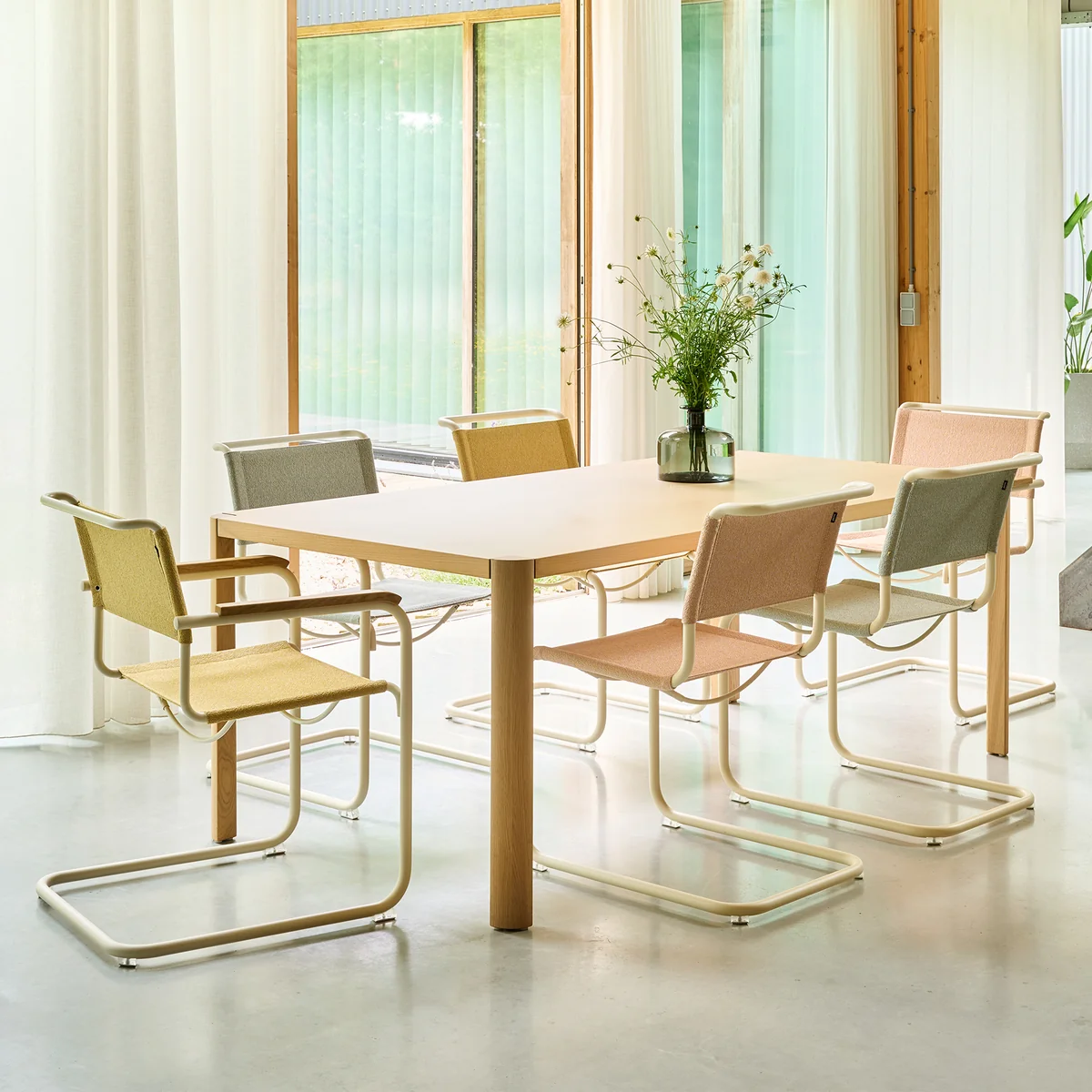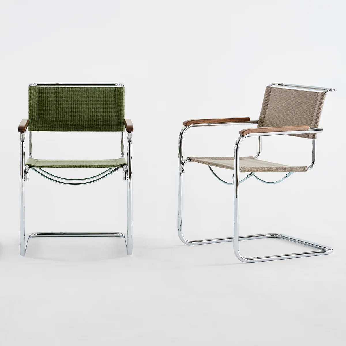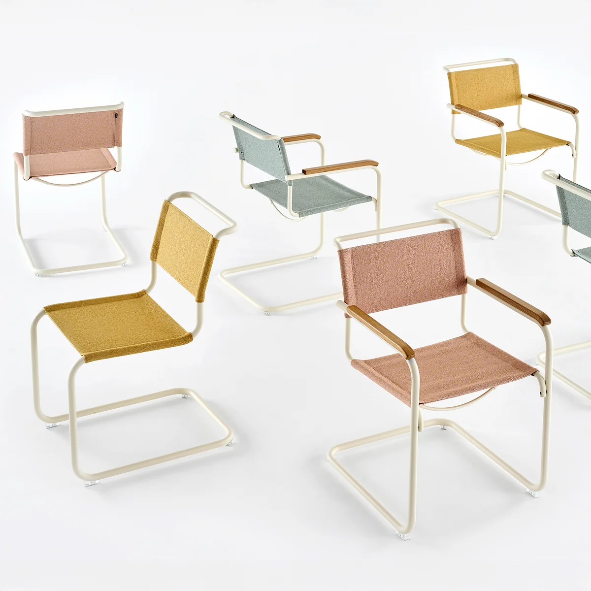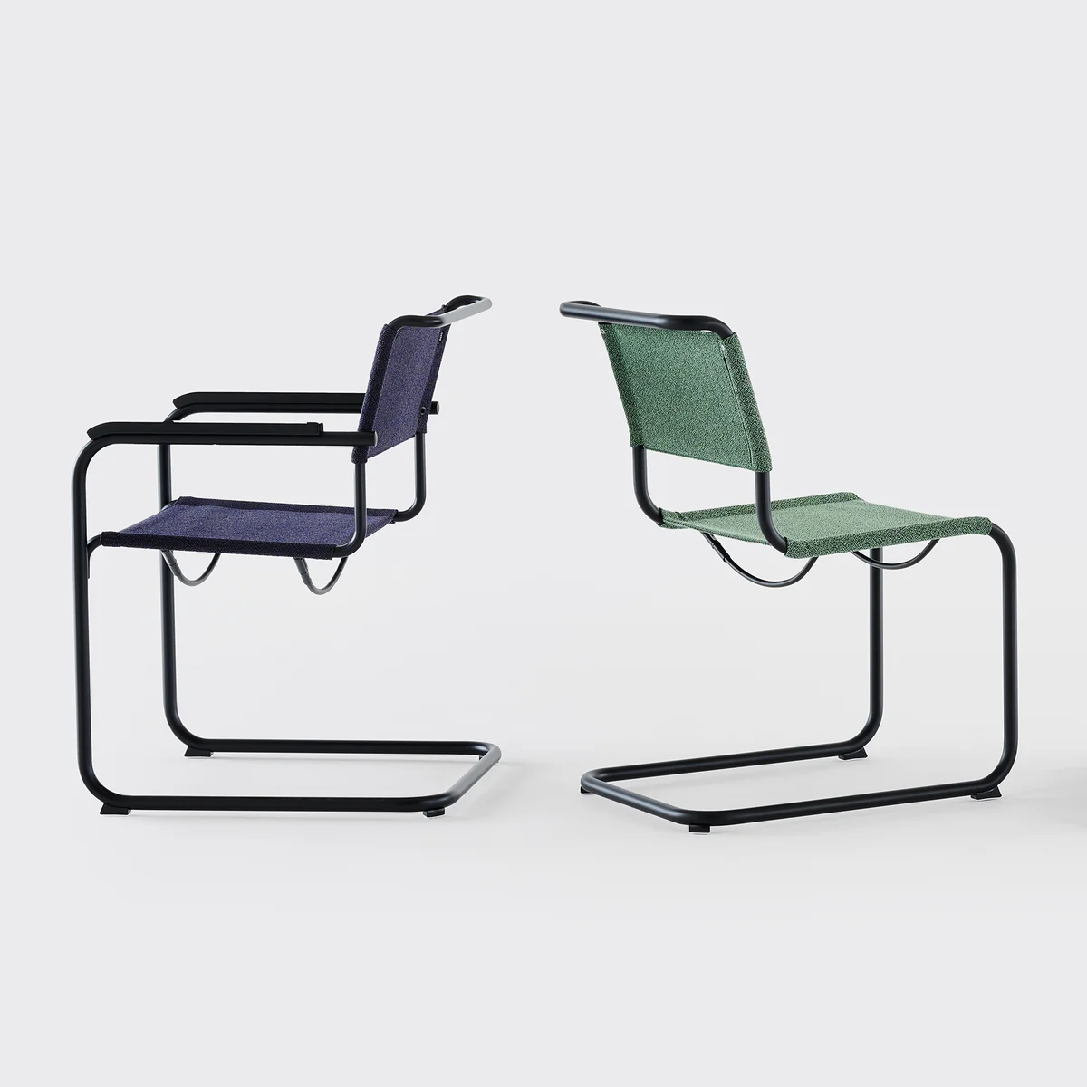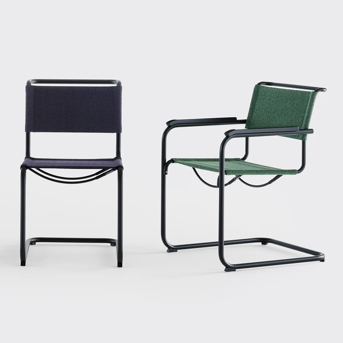 The chair was designed by Mart Stam, who began experimenting with bent gas pipes in 1925 and developed the principle of cantilevered seating. At the Werkbund exhibition in Stuttgart in 1927, the S 33 and S 34 models caused a sensation and marked a turning point in furniture history. The famous quote by Kurt Schwitters - "Why four legs when two are enough" - sums up the design revolution in a nutshell. To this day, the cantilever chairs from Thonet are among the best-known and most popular designer chairs in the world.