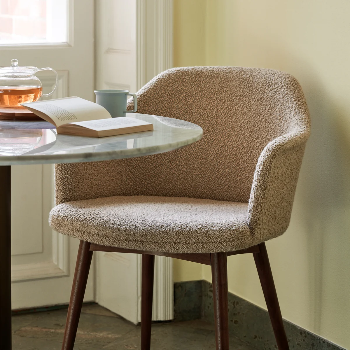 The Danish manufacturer's Rely HW79 armchair & Tradition Is an evolution of the iconic Rely chair. This model inspires with solid wood legs, which makes the chair wonderfully versatile to place in front of the writing or dining table. The shell is made from 100% recycled polypropylene with fiberglass. It is available with HR foam in different covers.