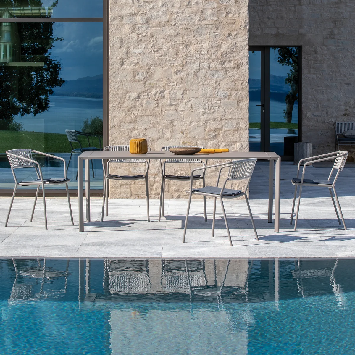The Slot armchair from Vermobil combines clear geometries, gentle curves and galvanized steel to create a modern outdoor chair with a strong presence. The mixture of solid surfaces and translucent elements creates an exciting visual contrast that conveys lightness and stability at the same time. Thanks to its powder-coated surface, the Slot armchair is weather-resistant and easy to clean - ideal for use in the garden, on the patio or in public outdoor areas. The harmoniously rounded corners and contemporary design give the armchair a youthful elegance that is impressive both individually and in combination with other pieces of furniture from the Slot series.