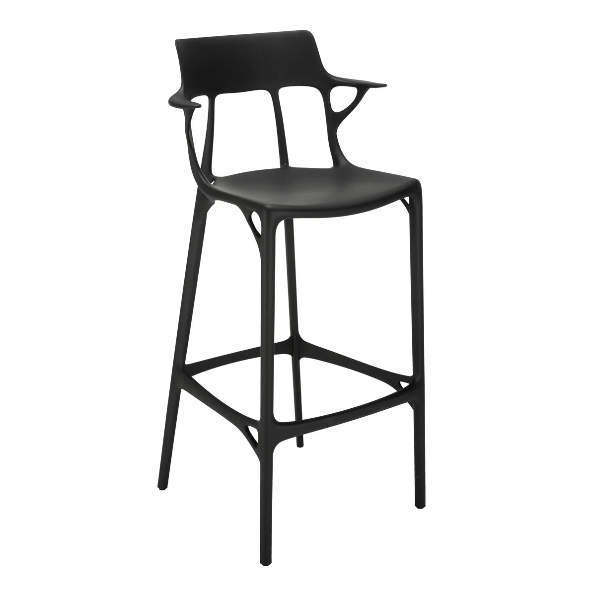 The AI bar stool (recycled) by Philippe Strack for Kartell extends the extraordinary AI product family. The AI in this case stands for "Artificial Intelligence". In collaboration with the 3D software company Autodesk, Strack developed an artificially generated chair over a period of years. The recycled bar stool now embodies this new addition.