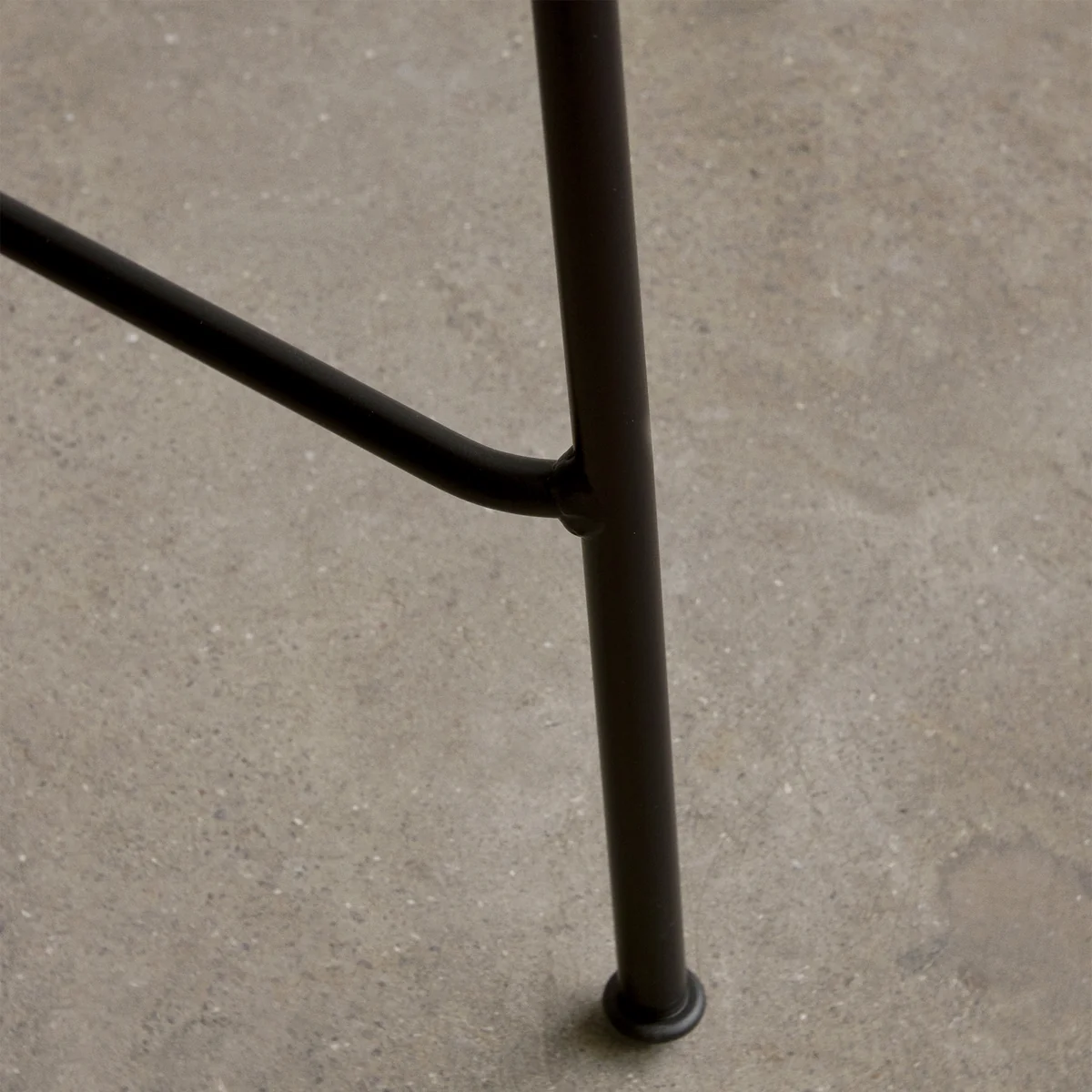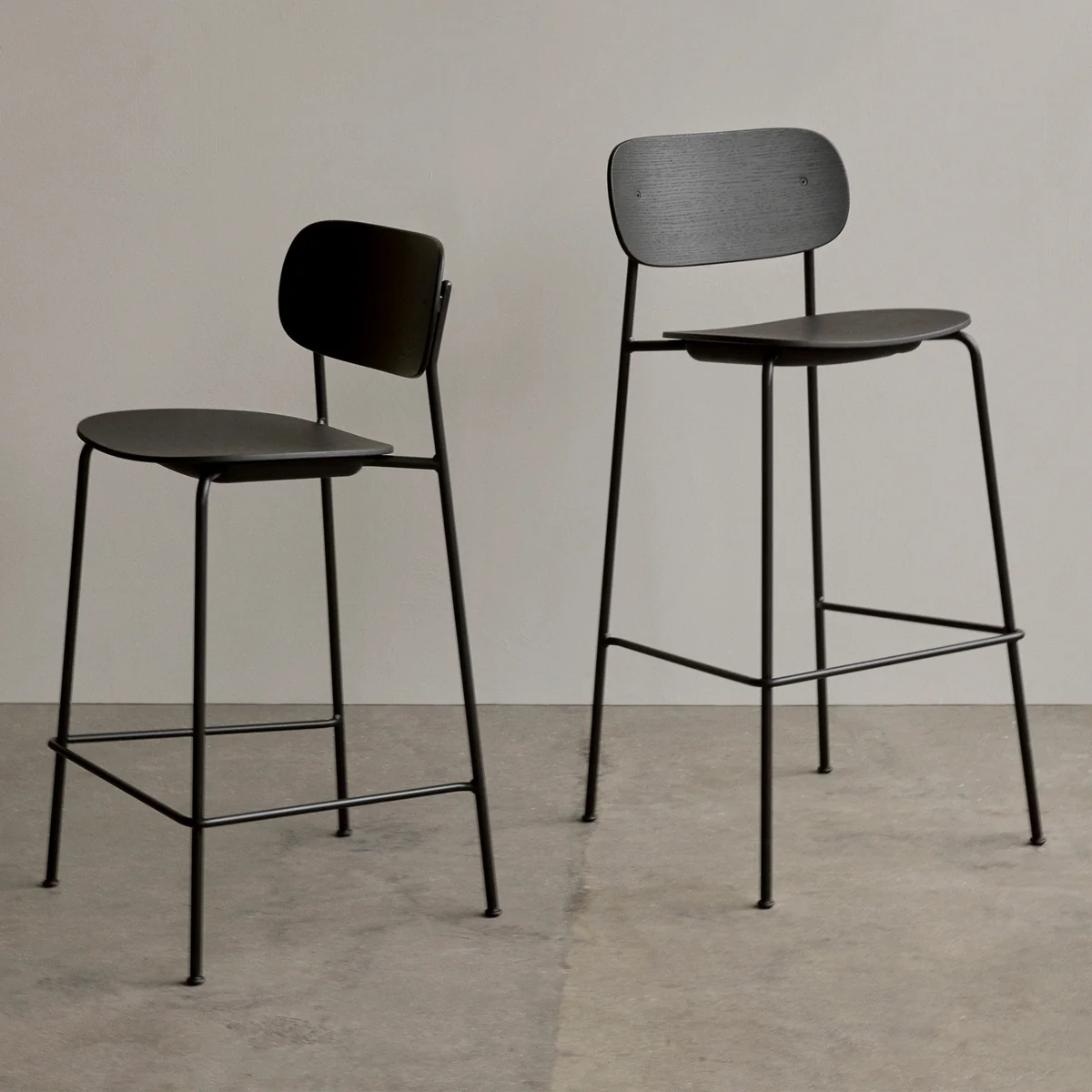 Audo s Co Counter Chair is characterized by the balanced contrast between a gently curved wooden seat and a slender tubular steel frame. The backrest is slightly inclined, creating optimal support and seating comfort.