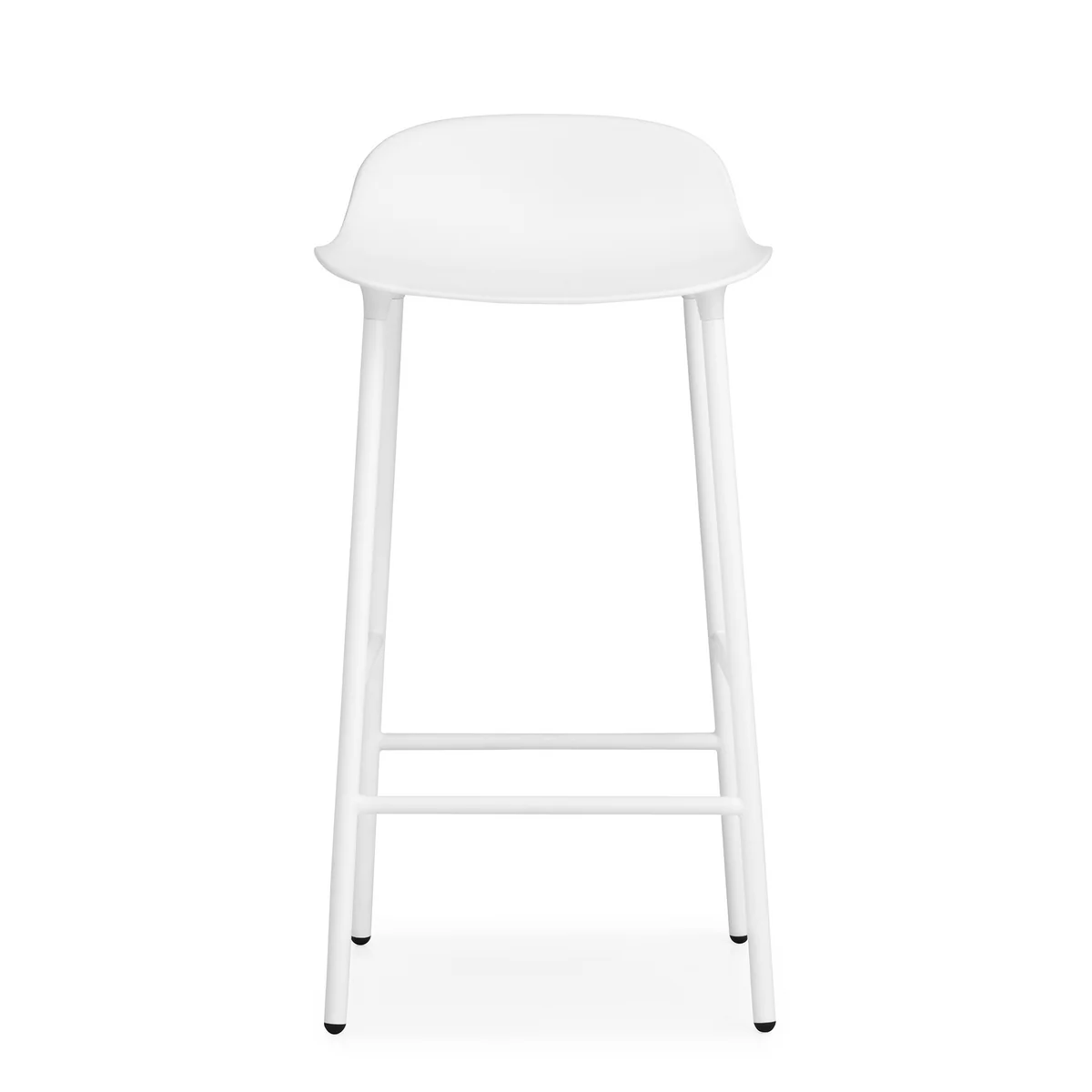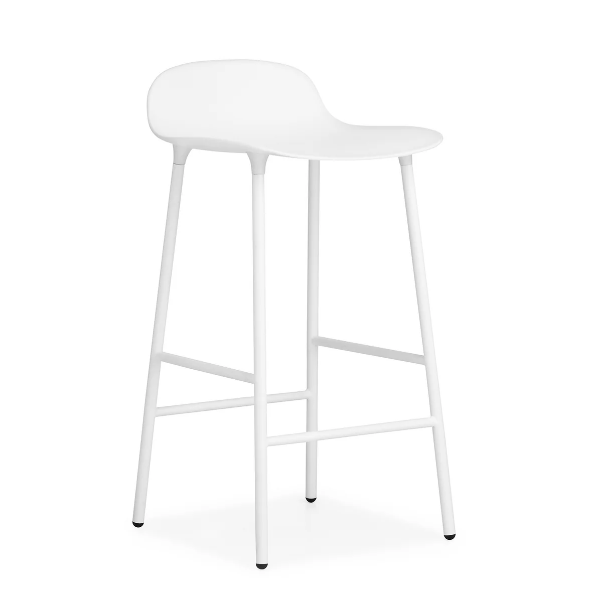 In addition to the bar stool (65 cm) with steel frame, the Form series also includes stools in other heights, chairs and armchairs with wooden, steel and chrome frames. The matching tables are also included.