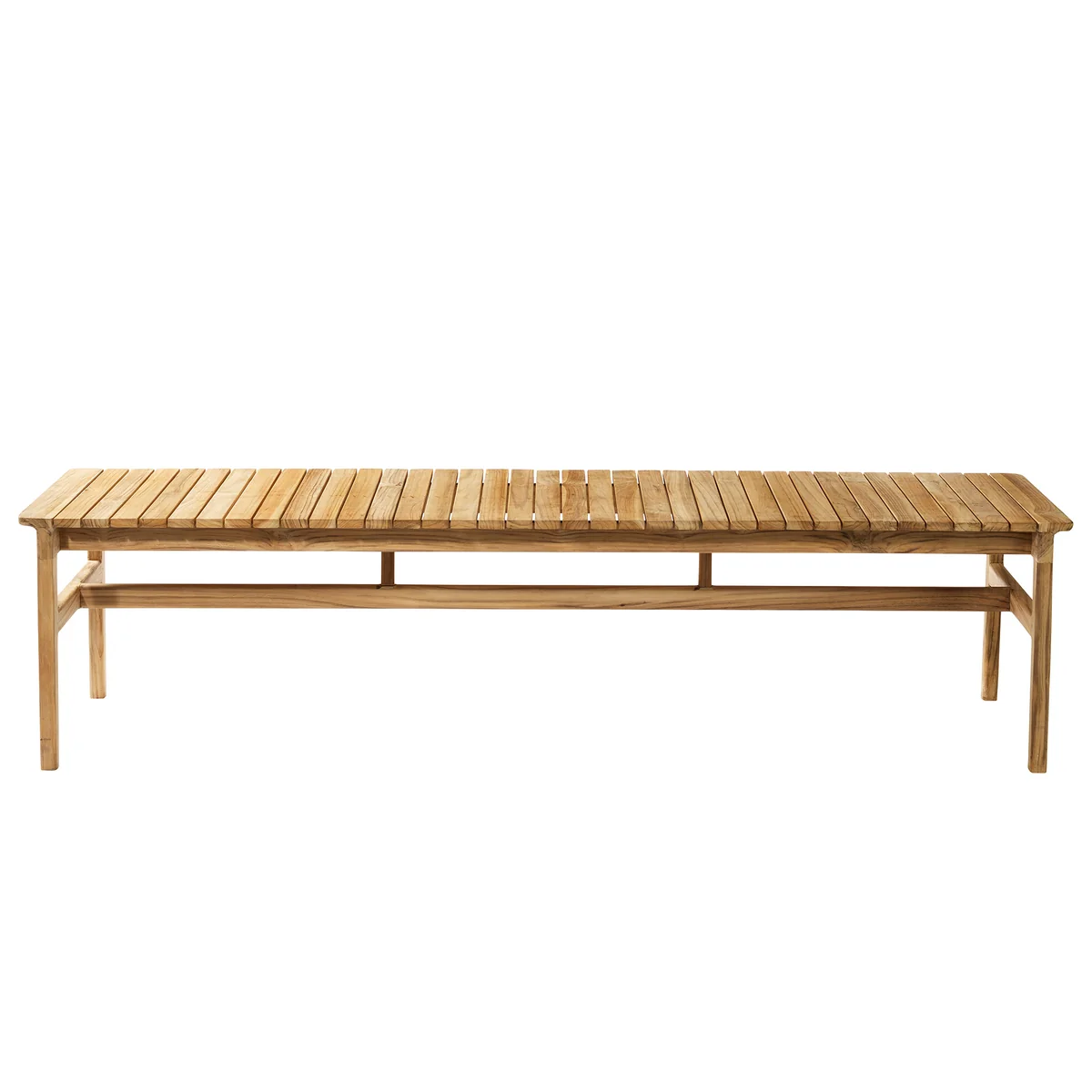 The garden bench without backrest from FDB Møbler impresses with its minimalist expression and simple, clean lines. The oiled teak bench is ideal for outdoor use and was designed by Thomas E. Alken. Robust and weather-resistant, the bench can be used as a seat at a dining table on the patio or as a comfortable place to sit or lie down in the garden.