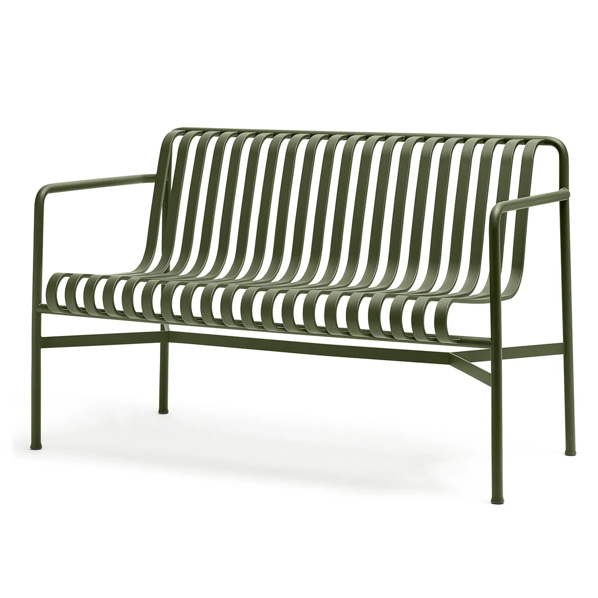 The Palissade dining bench from HAY is a garden bench that is ideal for cozy barbecue evenings in the garden. With its backrest and armrests, the bench offers a high level of comfort. The ergonomic shape of the bench - even without upholstery - allows you to lean back comfortably.